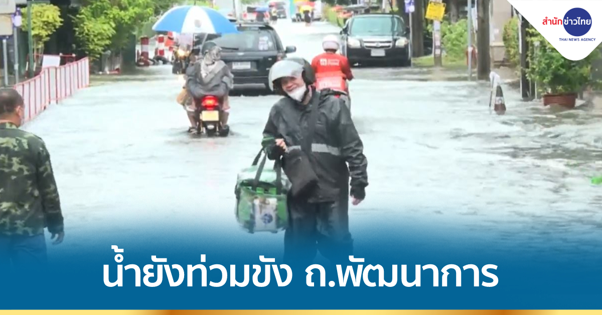 ฝนที่ตกลงมาตลอดทั้งคืน ทำให้น้ำท่วมขังบนถนนรถเลียบทางรถไฟ ช่วงสถานีรถไฟฟ้าแอร์พอร์ตลิงก์ หัวหมาก ถึงหน้าสถานีตำรวจนครบาลคลองตัน เขตคลองตัน กรุงเทพฯ ทั้ง 2 ช่องจราจร ทำให้รถที่สัญจรในเส้นทางนี้ สัญจรผ่านได้อย่างยากลำบากและติดขัดเป็นบางช่วง โดยเฉพาะจุดตัดถนนเลียบทางรถไฟ กับซอยพัฒนาการ 25 มุ่งหน้าถนนพัฒนาการ ซึ่งมีน้ำท่วมขังหลายจุดทั้งขาเข้าและขาออก ตั้งแต่ช่วงซอยพัฒนาการ 16 จนถึงซอยพัฒนาการ 40 โดยเฉพาะซอยพัฒนาการ 40 มีน้ำท่วมขังสูงเกือบ 50 เซนติเมตร ผู้ปกครองต้องเดินลุยน้ำรับบุตรหลานกลับก่อนเวลาเลิกเรียน หวั่นฝนตกหนักทำน้ำท่วมซ้ำ ด้านชาวบ้านเผยในซอยมีคลองระบายน้ำ แต่เต็มไปด้วยวัชพืช ทำน้ำไหลย้อนท่วมซอย.-สำนักข่าวไทย