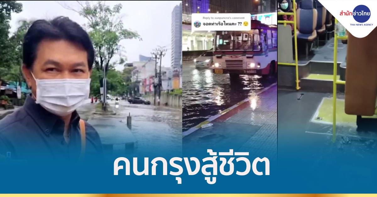 อีกคลิป บนรถแท็กซี่ น้ำท่วมเข้าห้องโดยสาร ผู้โดยสารเป็นคนถ่ายคลิปไว้ ลุ้นไปกับคนขับว่าจะรอดถึงบ้านไหม เหตุเกิดแถวสุขุมวิท 71 แต่เจ้าของคลิปก็ยังพูดด้วยเสียงที่สดใส เหมือนเข้าใจชีวิตคนกรุง