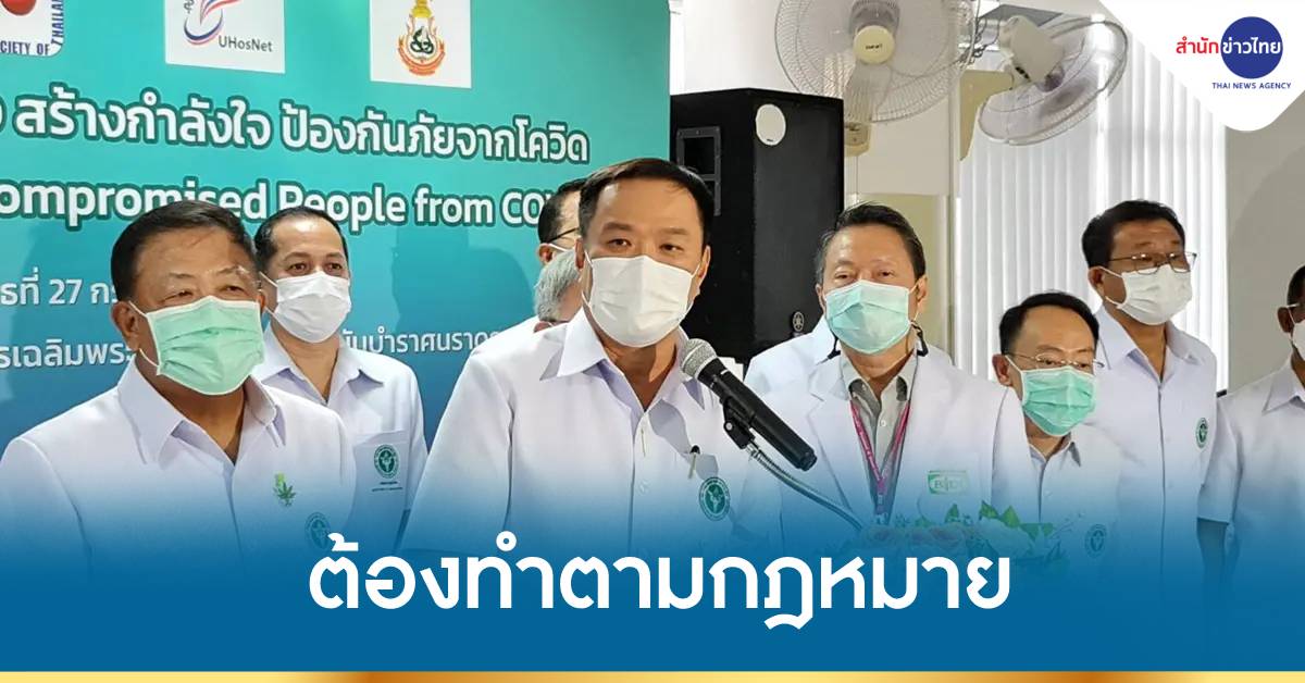 สธ. 27 ก.ค.- “อนุทิน” แจงหนังสือกำชับตำรวจดำเนินคดีคนละเมิดประกาศกระทรวงฯ เรื่องสมุนไพรควบคุม เป็นไปตามกฎหมาย ผู้ใช้ผิดวัตถุประสงค์ก็ต้องถูกดำเนินคดี ส่วนกรณี “ทอม” เป็นเพื่อน ก็ต้องทำตามกฎหมายเช่นกัน ปัดใช้เคพีไอให้ รพ.ทุกแห่งทำคลินิกกัญชา