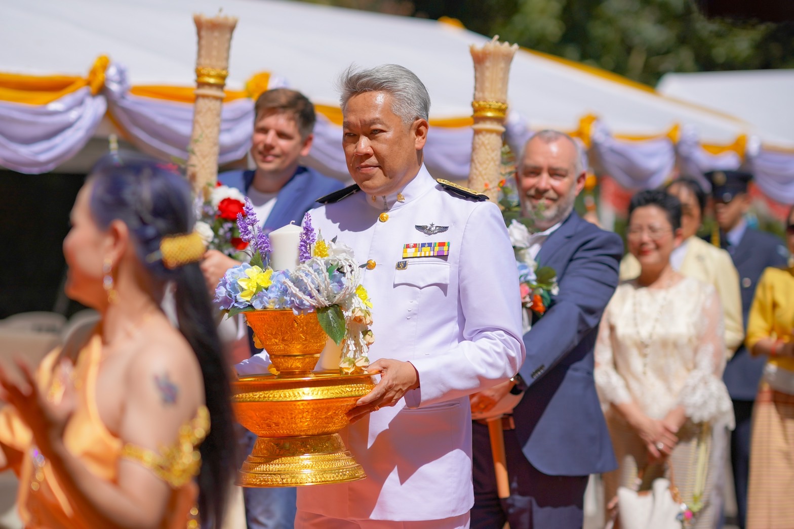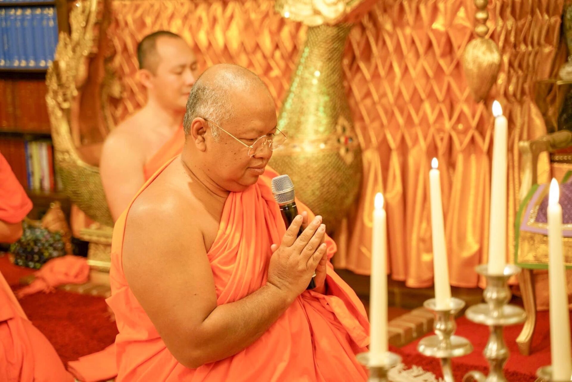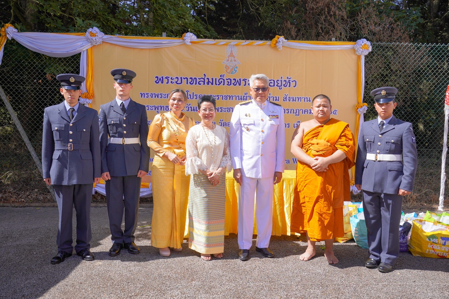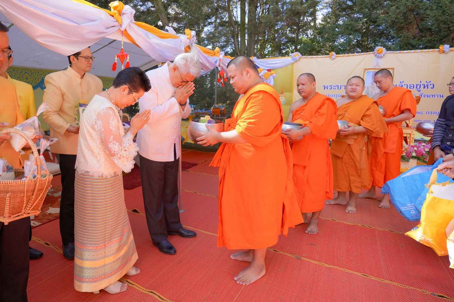 ในงานพิธีได้กราบอาราธนาพระสงฆ์ทรงสมณศักดิ์ที่ปฏิบัติศาสนกิจอยู่ในสหราชอาณาจักร นำโดยพระเดชพระคุณพระราชวิเทศปัญญาคุณ ประธานองค์กรพระธรรมทูตไทยในสหราชอาณาจักรและไอร์แลนด์ เป็นประธานฝ่ายสงฆ์ และมีท่านพิษณุ สุวรรณะชฏ เอกอัครราชทูตประจำกรุงลอนดอน เป็นประธานฝ่ายฆราวาส ในการนี้ได้รับพระมหากรุณาธิคุณโปรดพระราชทานผ้าไตรถวายพระสงฆ์สมณศักดิ์ที่เจริญพระพุทธมนต์ นับเป็นพระมหากรุณาธิคุณอย่างหาที่สุดมิได้วาระอันเป็นมงคลนี้ นับเป็นครั้งแรก และครั้งประวัติศาสตร์ แห่งการเชื่อมสายสัมพันธ์ระหว่างพสกนิกรชาวไทยในต่างแดน กับทั้งสถาบันชาติ ศาสนา และพระมหากษัตริย์