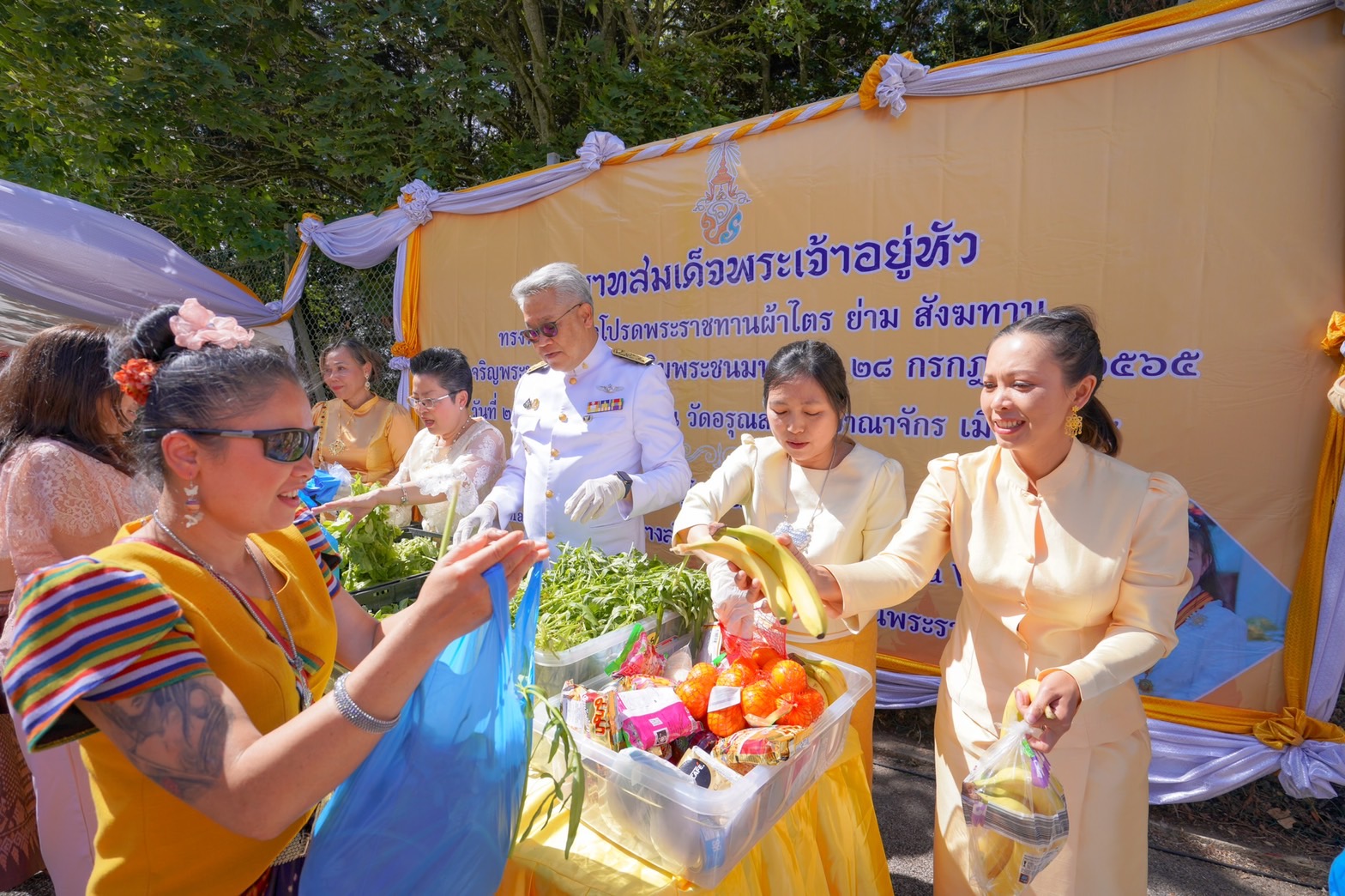สำนักข่าวไทย 28 ก.ค.-วัดอรุณสหราชอาณาจักร เมืองนอริช นำคนไทยในต่างแดน จัดงานเฉลิมพระเกียรติพระบาทสมเด็จพระเจ้าอยู่หัว เนื่องในโอกาสวันเฉลิมพระชนมพรรษา พร้อมนำผลผลิตจากแปลงผักโคกหนองนา หลอมรวมความศรัทธา มาแจกกับผู้ร่วมงาน