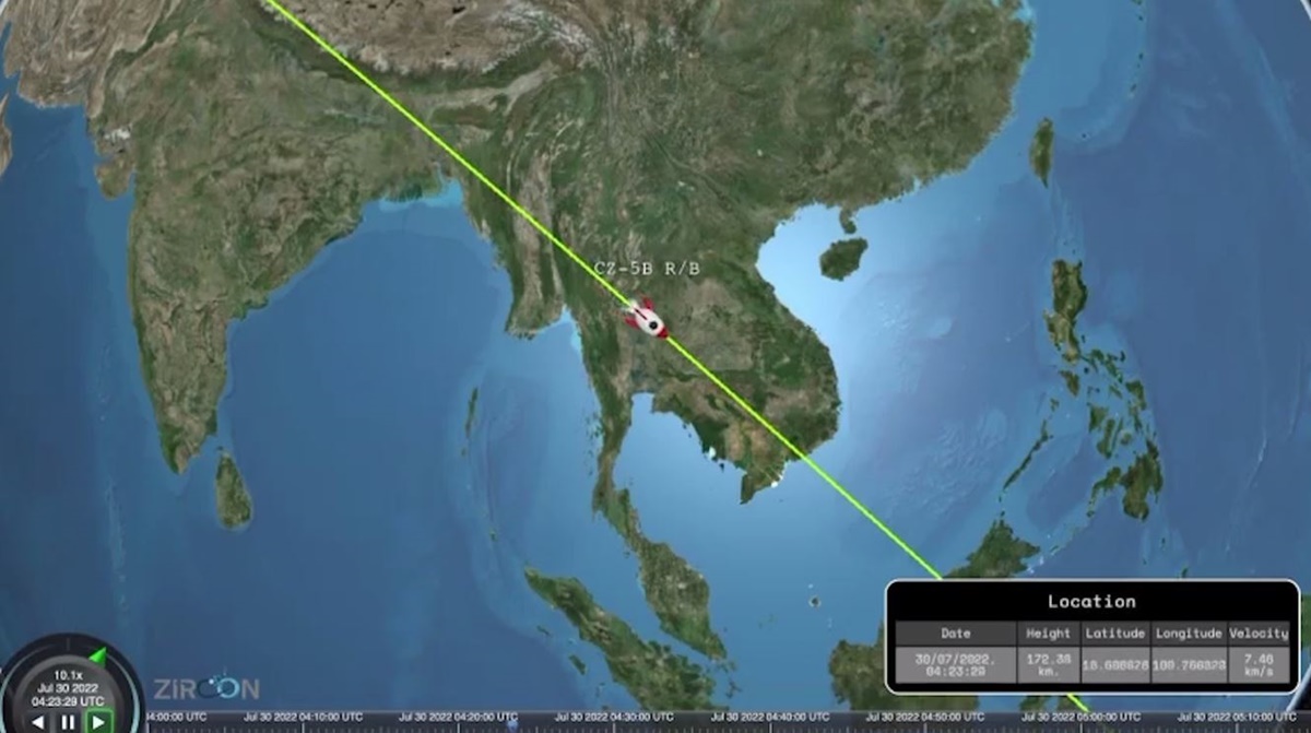 นายสิทธิพร ชาญนำสิน ผอ.ศูนย์วิจัยเทคโนโลยีอวกาศ GISTDA กล่าวถึงความคืบหน้ากรณีชิ้นส่วนจรวด Longmarch-5B จะตกลงสู่พื้นโลก ว่า จากการวิเคราะห์ล่าสุดเมื่อเวลา 10.00 น. วันนี้ (30 ก.ค.) คาดว่าชิ้นส่วนจะตกลงสู่พื้นโลก ในเวลา 20.00-21.00 น. ของวันนี้ ไปจนถึง 06.00 น. วันพรุ่งนี้ (31 ก.ค.) โดยพิกัดล่าสุดคาดว่าจะตกในมหาสมุทรอินเดีย