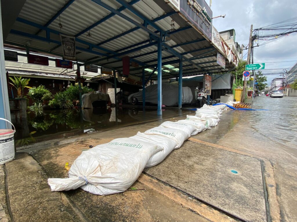 ขณะที่เขตประเวศก็มีรายงานพบว่า ยังคงมีน้ำท่วมขังบริเวณผิวจราจรถนนเฉลิมพระเกียรติ ร.9 บริเวณซอย 49-คลองปลัดเปรียง, แยกศรีอุดม-ถนนเฉลิมพระเกียรติ ซอย 3 น้ำท่วมผิวจราจร 15-20 เซนติเมตร ซึ่งปัญหาคลองย่อยต่างๆ ซึ่งเป็นเส้นทางระบายน้ำที่สำคัญยังคงมีการรุกล้ำอยู่มีส่วนทำให้น้ำลงได้ช้า และการก่อสร้างระบบระบายน้ำบึงหนองบอนที่มีปัญหาบริเวณคลองเคล็ด และยังต้องใช้เวลาในการแก้ไข ทำให้ส่งผลกระทบต่อการระบาย