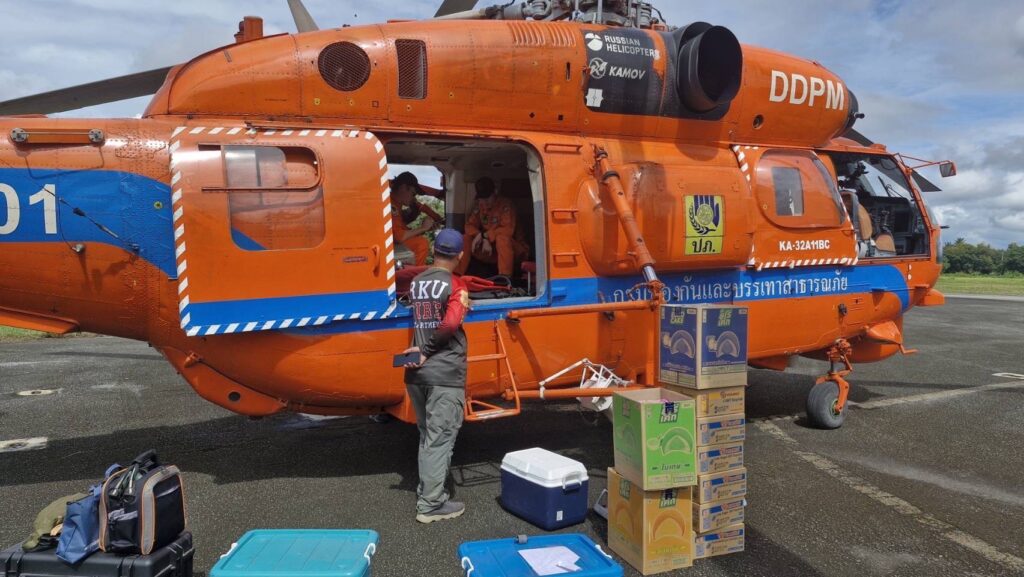 ในส่วนของการเสริมกำลังดูแลให้ความช่วยเหลือประชาชนในจังหวัดเชียงราย กรมป้องกันและบรรเทาสาธารณภัย (ปภ.) ร่วมกับกองทัพบก (ทบ.) สนธิกำลังร่วมส่งเฮลิคอปเตอร์ป้องกันและบรรเทาสาธารณภัย KA-32 จำนวน 1 ลำ พร้อมด้วยเจ้าหน้าที่กู้ภัยประจำ ฮ.ปภ.32 “The Guardian Team” สนับสนุนภารกิจการช่วยเหลือผู้ประสบอุทกภัยในพื้นที่ จ.เชียงราย