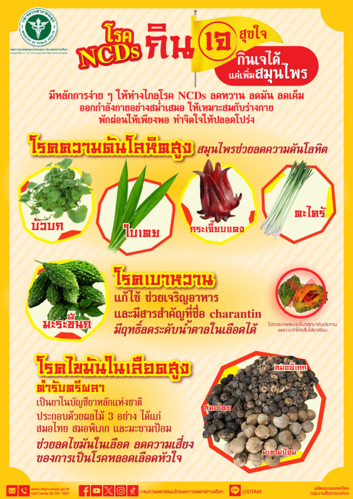 กรมการแพทย์แผนไทยและการแพทย์ทางเลือก ห่วงใยผู้ป่วยโรคไม่ติดต่อเรื้อรัง NCDs เช่น โรคความดันโลหิตสูง เบาหวาน และ ไขมันในเลือดสูง แนะนำเคล็ดลับการดูแลสุขภาพด้วยศาสตร์การแพทย์แผนไทย ให้ห่างไกลโรค ช่วงเทศกาลถือศีลกินเจ