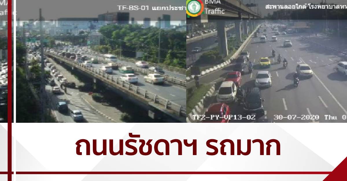 กทม. 30 ก.ค.-สวพ.FM91 รายงานจราจรเช้าวันพฤหัสบดี ถนนรัชดาภิเษก ขาเข้า ข้ามแยกประชานุกูล มุ่งหน้าต่างระดับรัชวิภา รถมาก