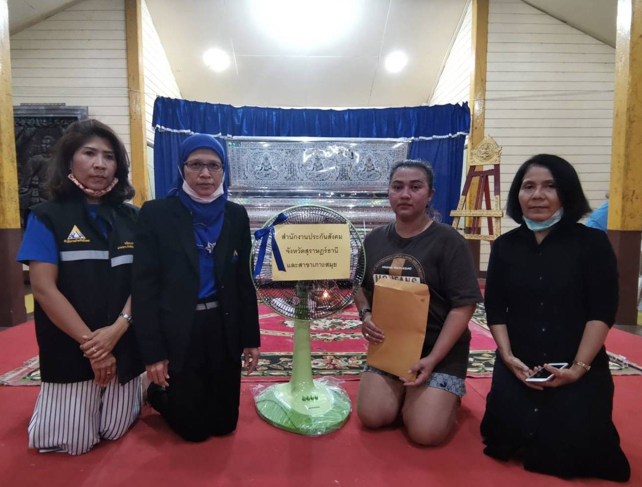 ทั้งนี้ นางมารศรี ประกันสังคมจังหวัดสุราษฎร์ธานี ได้มอบหมายนางธาราทิพย์ ธนูทอง ประกันสังคมจังหวัดสุราษฎร์ธานี สาขาเกาะสมุย ร่วมสวดพระอภิธรรมศพนายเทวิน สุราษฎร์ ผู้เสียชีวิต จากเหตุเรือล่ม ที่วัดนาราเจริญสุข อ.เกาะสมุย ซึ่งในวันนี้ (3 ส.ค.) ญาติจะนำศพไปที่บ้านเกิด จ.สกลนคร