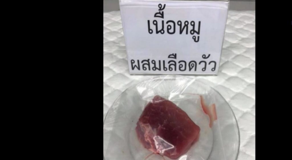 กระทรวงเกษตรและสหกรณ์ มอบหมายให้กรมปศุสัตว์จัดคณะทำงานแก้ปัญหาการนำเนื้อหมูมาหลอกขายเป็นเนื้อวัว โดยใช้เนื้อหมูหมักเลือดวัว ซึ่งพบในกรุงเทพฯ และต่าง จังหวัด ส่งผลกระทบร้ายแรงต่อผู้บริโภคอาหารฮาลาล หลังสำนักงานคณะกรรมการกลางอิสลามแห่งประเทศไทย พบการขายตามเขียงและรถเร่ รวมทั้ง ขายผ่านออนไลน์ นอกจากนี้ ยังนำตัวอย่างมาตรวจวิเคราะห์ ทั้งเนื้อสดและอาหารที่ปรุงแล้ว ซึ่งใช้เนื้อวัวเทียมเป็นวัตถุ ดิบที่ขายในโรงเรียนรวม 42 ตัวอย่าง ปรากฏว่า เป็นเนื้อหมูหมักเลือดวัวถึง 70 % ส่วนตัวอย่างที่ขายออนไลน์ เป็นเนื้อวัวเทียม 100 % ทั้งพบเชื้อโรคซึ่งเป็นอันตรายต่อสุขภาพ