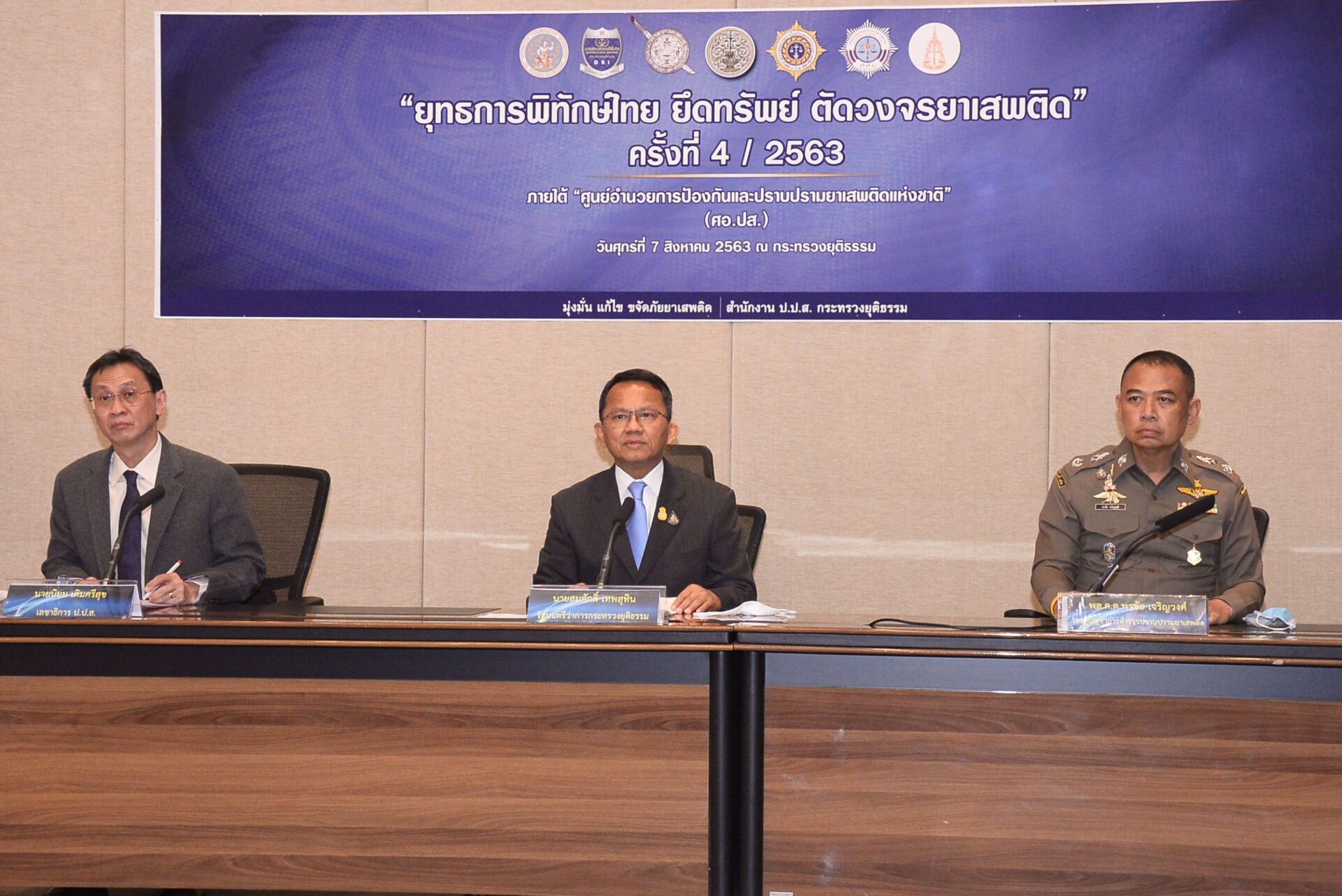 ก.ยุติธรรม 7 ส.ค.-ศอ.ปส.แถลงตัดวงจรเครือข่ายยาเสพติดทั่วประเทศ 108 เครือข่าย ยึดทรัพย์เกือบ 1,600 ล้านบาทเกินเป้าหมายที่ตั้งไว้ในปี 2563 เผยพบชนกลุ่มน้อยขยายพื้นที่กระจายทำธุรกิจหลายจังหวัดจากเหนือลงใต้แปรสภาพเงินค้ายาฯส่งเครือญาติ