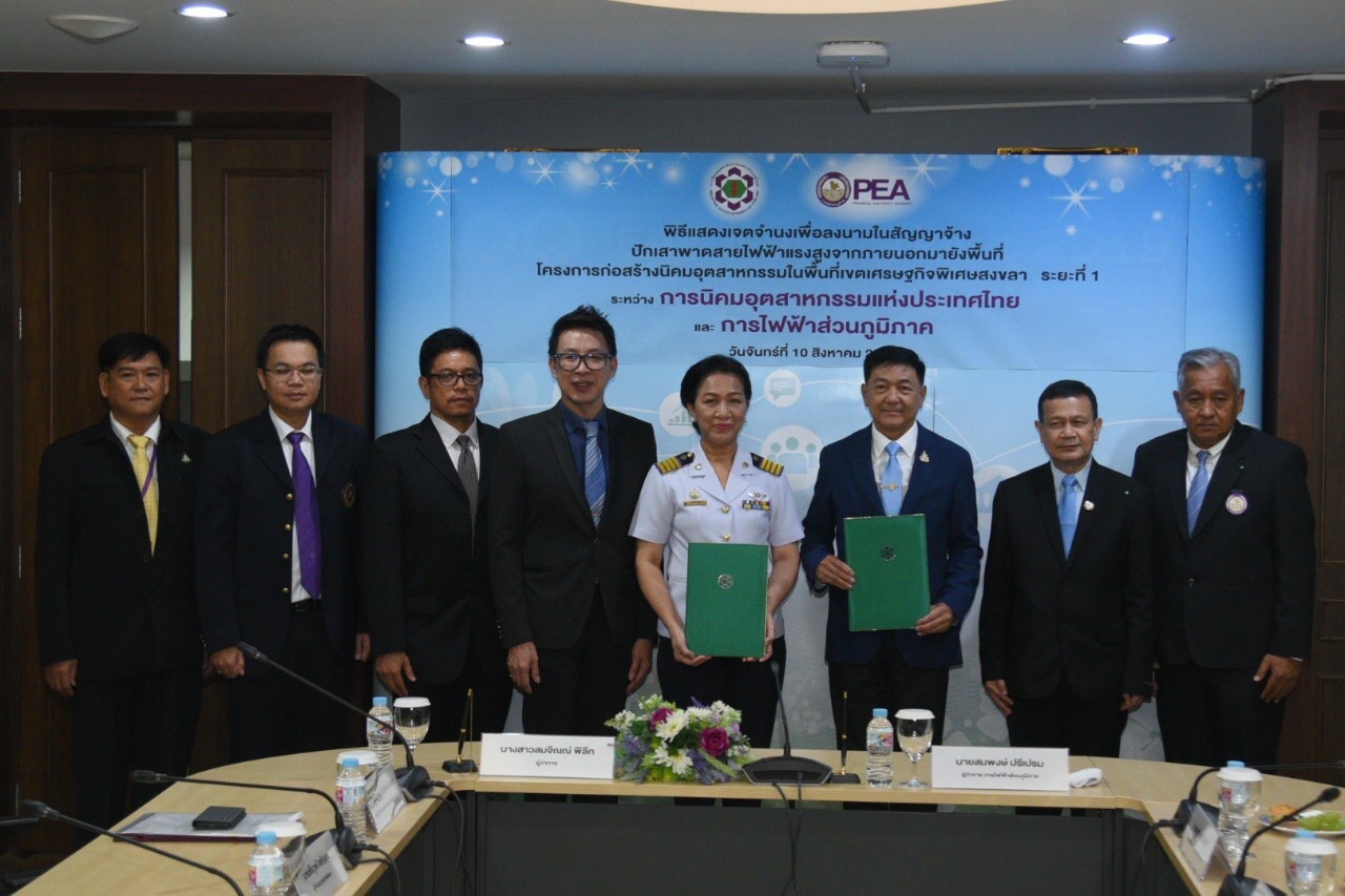 สำนักข่าวไทย 10 ส.ค.- การไฟฟ้าส่วนภูมิภาค ร่วมมือกับ การนิคมอุตสาหกรรมแห่งประเทศไทย ร่วมลงนามประกาศเจตจำนงก่อสร้างขยายเขตระบบจำหน่ายไฟฟ้าแรงสูง 33 กิโลโวลต์ จากภายนอกมายังพื้นที่เขตเศรษฐกิจพิเศษสงขลา ระยะที่ 1 ณ ห้องประชุม 501 สำนักงานใหญ่ การนิคมอุตสาหกรรมแห่งประเทศไทย
