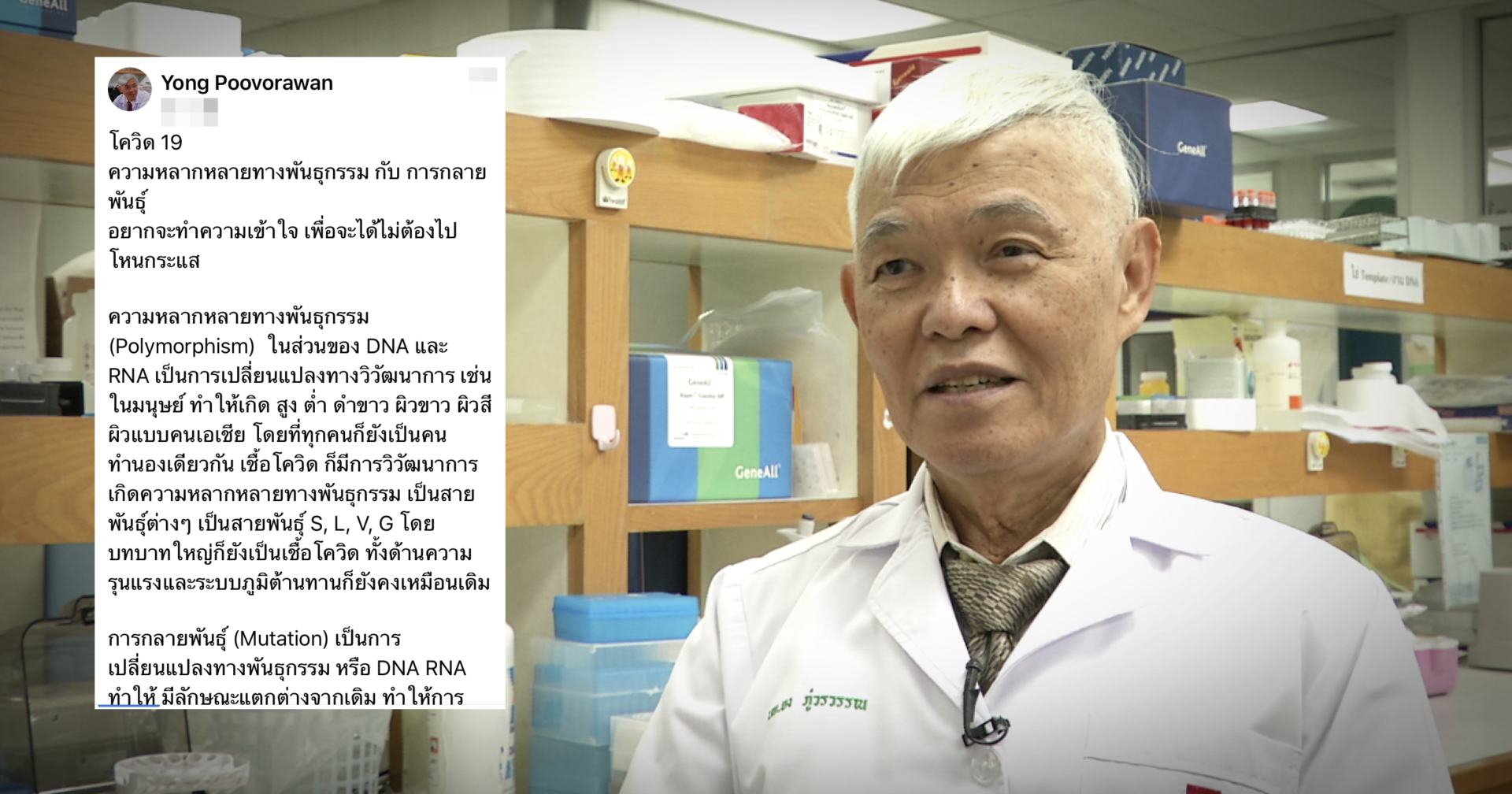 ศ.นพ.ยง ภู่วรวรรณ หัวหน้าศูนย์เชี่ยวชาญเฉพาะทางด้านไวรัสวิทยาคลินิก ภาควิชากุมารเวชศาสตร์ คณะแพทยศาสตร์ จุฬาลงกรณ์มหาวิทยาลัย โพสต์เฟซบุ๊ก เรื่อง “โควิด-19 ความหลากหลายทางพันธุกรรม กับ การกลายพันธุ์” อยากจะทำความเข้าใจ เพื่อจะได้ไม่ต้องไปโหนกระแส