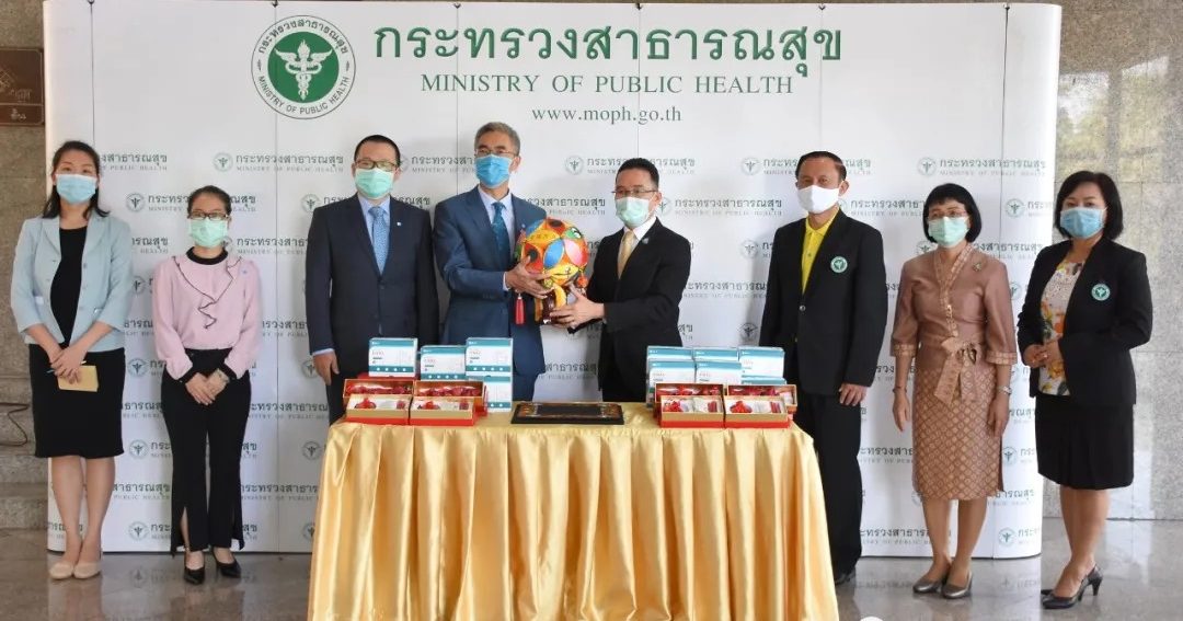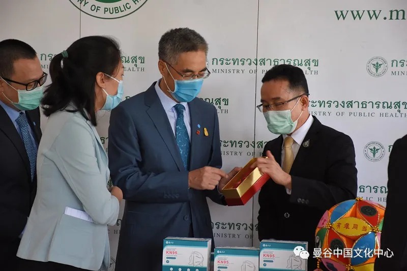 สำนักข่าวไทย 14 ส.ค. 63 – เมื่อวันที่ 29 กรกฎาคม ศูนย์วัฒนธรรมแห่งประเทศจีน ณ กรุงเทพฯ ได้นำหน้ากากอนามัย N95 จำนวน3,000 ชิ้น และลูกบอลแพรปักที่ทำจากสมุนไพรตำรับแพทย์แผนจีนมอบให้กระทรวงสาธารณสุข โดยมี นพ.ณรงค์ สายวงศ์ รองปลัดกระทรวงสาธารณสุขเป็นตัวแทนผู้รับมอบ