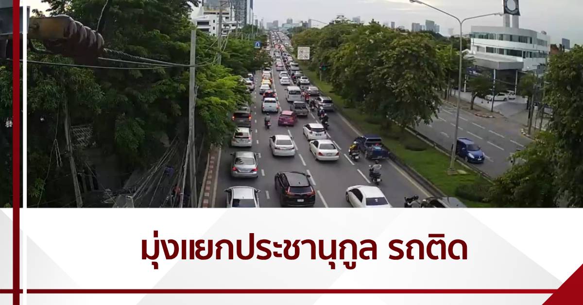 กทม. 17 ส.ค.-สวพ.FM91 รายงานจราจรเช้าวันจันทร์ ถนนรัชดาภิเษก ขาเข้า มุ่งหน้าแยกประชานุกูล ต่อเนื่องต่างระดับรัชวิภา รถติดขัดมาก ท้ายแถวสะสมเชิงทางขึ้นสะพานข้ามแยกวงศ์สว่าง