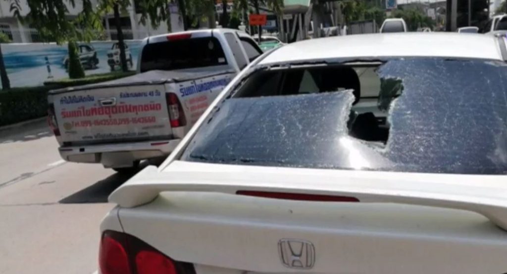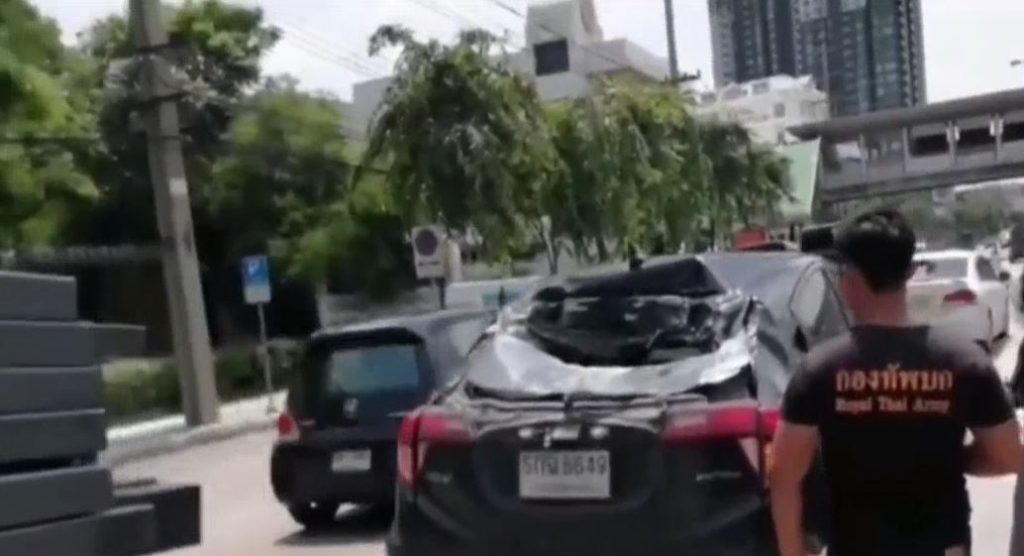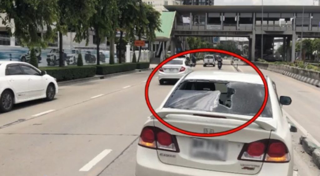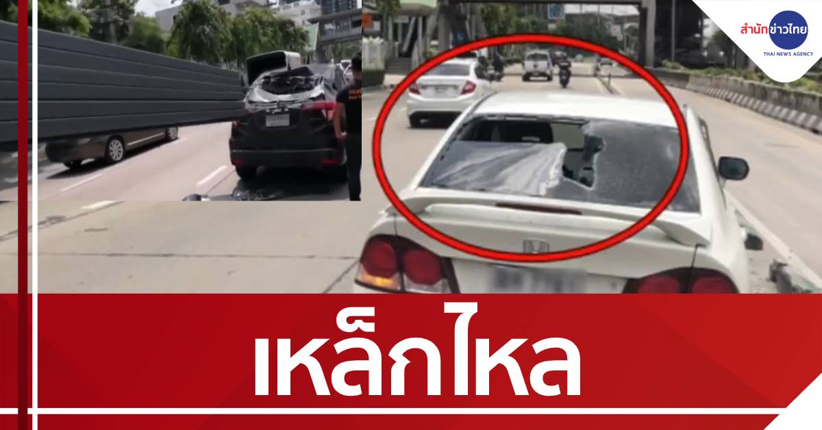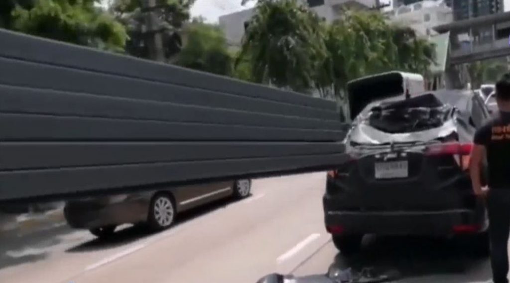 ด้านคุณภัทรานิษฐ์ ธรรมสิทธิ์โสภณ เจ้าของรถซีวิค สีขาว เล่าว่า ก่อนเกิดเหตุเจอเหล็กวงกลมกลิ้งมา จึงต้องเบี่ยงหลบ เพื่อไม่ให้กระแทกรถ จากนั้นได้ยินเสียงดังโครม เข้าใจว่ารถถูกชนท้าย เมื่อลงมาดู เห็นรถ HRV มีเหล็กเส้นตกอยู่ ส่วนกระจกหลังมีรูที่ถูกเหล็กกระแทก จึงทราบว่า เหล็กไหลมา เคราะห์ดีที่ตนเบี่ยงรถ ทำให้เหล็กที่กระแทกเข้ามา ไม่โดนตัวเอง ก่อนที่จะตกลงไปกับพื้น