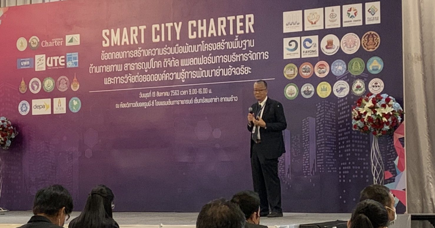 นายฐาปนา บุณยประวิตร กรรมการและเลขานุการกฏบัตรแห่งชาติ (National charter) กล่าวว่า การพัฒนาย่านอัจฉริยะให้เป็นพื้นที่ต้นแบบ สืบเนื่องมาจากการลงนามข้อตกลงพัฒนาโครงสร้างพื้นฐานด้านกายภาพ ดิจิทัลและแพลตฟอร์มการบริหารจัดการ ย่านอัจฉริยะตามกรอบกฏบัตร เมืองอัจฉริยะ (Smart City Charter) ของหน่วยงานต่างๆ คือสมาคมการผังเมืองไทย สมาคมอสังหาริมทรัพย์ไทย บริษัท ยูไนเต็ด เทคโนโลยีเอ็นเตอร์ไพรส์ จำกัด (UTE) และ13 เทศบาลขนาดใหญ่ อาทิ เทศบาลนครนครสวรรค์ เทศบาลนครอุดรธานี เทศบาลเมืองทุ่งสง เป็นต้น ซึ่งขณะนี้ มีเทศบาลแสดงความจำนงเข้าร่วม รวมทั้งหมด 28 เทศบาล และ6มหาวิทยาลัย