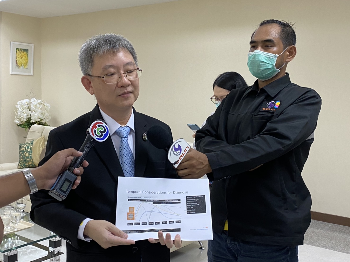 นพ.โอกาส กล่าวว่าส่วนการระบุว่าพบเชื้อในร่างกายของผู้ต้องสงสัยรายนี้ น้อยก็เป็นได้ว่าcycle time หรือรอบของการเพาะเชื้อในหลอดทดลอง เพื่อดูว่าจำนวนเชื้อไวรัสในร่างกาย หากพบว่ามีมากกว่า 35 แสดงว่า จำนวนไวรัสมีน้อย ต้องมีการตรวจเพิ่มเพื่อให้แน่ใจ ว่าป่วยหรือไม่ แต่หากต่ำกว่า 30แสดงว่าป่วยและมีเชื้อไวรัสในร่างกายแน่นอน โดยปัจจุบันข้อมูลจาก US CDC พบว่าผู้ป่วยโควิดส่วนใหญ่ ร้อยละ 50 ไม่แสดงอาการและมีอาการน้อย ร้อยละ20-30 โดยการจะยืนยันว่าเป็นผู้ติดเชื้อไควิด-19 จะต้องตรวจเจอยีนส์ของเชื้อไวรัสดังกล่าวถึง 2 ตำแหน่งสำคัญและปริมาณของเชื้อที่มากสัมพันธ์กับอาการและการแพร่เชื้อ ดังนั้นหากมีปริมาณเชื้อน้อย โอกาสแพร่โรคก็น้อยต่ำ ซึ่งข้อมูลพบว่า คนที่ไม่มีอาการป่วยโควิด โอกาสการแพร่เชื้อมีแค่ร้อยละ 0.6 และพบว่า การที่ร่างกายจะสร้างภูมิคุ้มกันโควิดได้ ต้องผ่านการป่วยมากอย่างน้อย 2 สัปดาห์