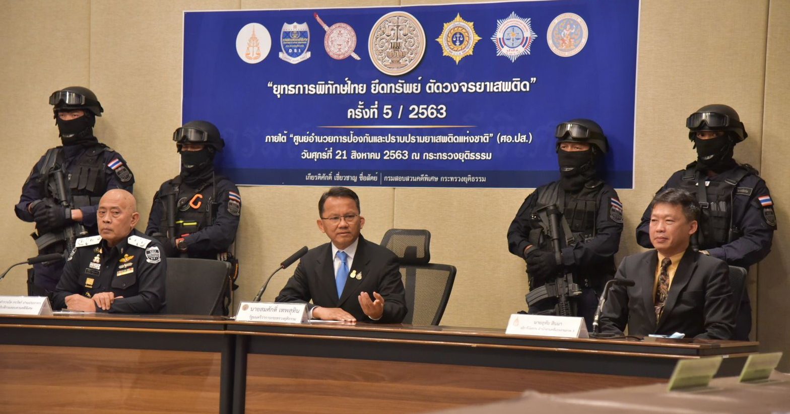 นายสมศักดิ์ เทพสุทิน รัฐมนตรีว่าการกระทวงยุติธรรม (รมว.ยธ.) ในฐานะผู้อำนวยการศูนย์อำนวยการป้องกันและปราบปรามยาเสพติดแห่งชาติ (ศอ.ปส.) และพ.ต.ท.กรวัชร์ ปานประภากร อธิบดีกรมสอบสวนคดีพิเศษ (ดีเอสไอ) ร่วมแถลงความคืบหน้าการใช้อุปกรณ์เทคโนโลยีสมัยใหม่ในการตรวจสอบเส้นทางการเงินเครือข่ายค้ายาเสพติด กลุ่มของ น.ส.ชบา (นามสมมติ) ซึ่งเป็นกลุ่มค้ายาเสพติดรายเก่า และพบว่ามีการเปิดบัญชีเงินฝากรับโอนเงินจำนวน 65 บัญชีกระจายไปยังบัญชีอื่นๆอีกจำนวนมาก เส้นทางการเงินมีทั้งโอนเข้าบัญชีในประเทศ และบัญชีต่างประเทศเทศ รวมทั้งยังพบว่ามีชาวต่างชาติเข้ามาเกี่ยวข้องอีกด้วย และจากการขยายผลการตรวจสอบพบว่า น.ส.ชบา เป็นเจ้าของกลุ่มธุรกิจสีเทา เช่น สถานบันเทิง ประเภท ผับ และกลุ่มพนันออนไลน์ ซึ่งขณะนี้เจ้าหน้าที่กรมสอบสวนคดีพิเศษอยู่ระหว่างการขยายผลสอบเพิ่มเติม และยังไม่พบว่ามีนายทุนใหญ่เข้ามาหนุนหลัง