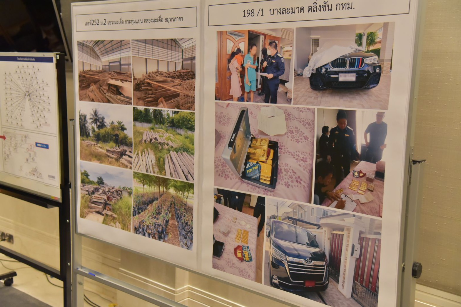 นอกจากนี้ยังพบบัญชีธนาคาร จำนวน 65 บัญชี มูลค่า 50 ล้านบาท บ้านพร้อมที่ดินจำนวน 85 รายการ มูลค่า 340 ล้านบาท รถยนต์ 97 คัน มูลค่ากว่า 83 ล้านบาท ทองคำ 1,064 บาท มูลค่ากว่า 31 ล้านบาท พระกรอบทอง พร้อมสร้อยทอง 30 รายการ มูลค่ากว่า 2 ล้าน กระเป๋าแบรนด์เนม 11ใบ มูลค่ากว่า 8 แสนบาท เครื่องประดับ มูลค่า 5 แสนบาท รวมทั้งเงินสดสกุลต่างๆ อาทิ เงินดอลลาร์ เงินกีบลาว เงินดองเวียดนาม รวมทั้ง 1. 2 ล้านบาท และรวมมูลค่าการยึดทรัพย์ประมาณ 500 ล้านบาท และยังได้ยึดอายัดไม้แปรรูปในจังหวัดสมุทรสาครได้อีกจำนวนหนึ่ง จึงประสานให้กรมป่าไม้ตรวจสอบว่าไม้เป็นชนิดใด มีปริมาณเท่าใด หากพบว่าเป็นไม้ ที่ไม่ถูกต้อง ดีเอสไอจะดำเนินการตามกฎหมายขั้นเด็ดขาด