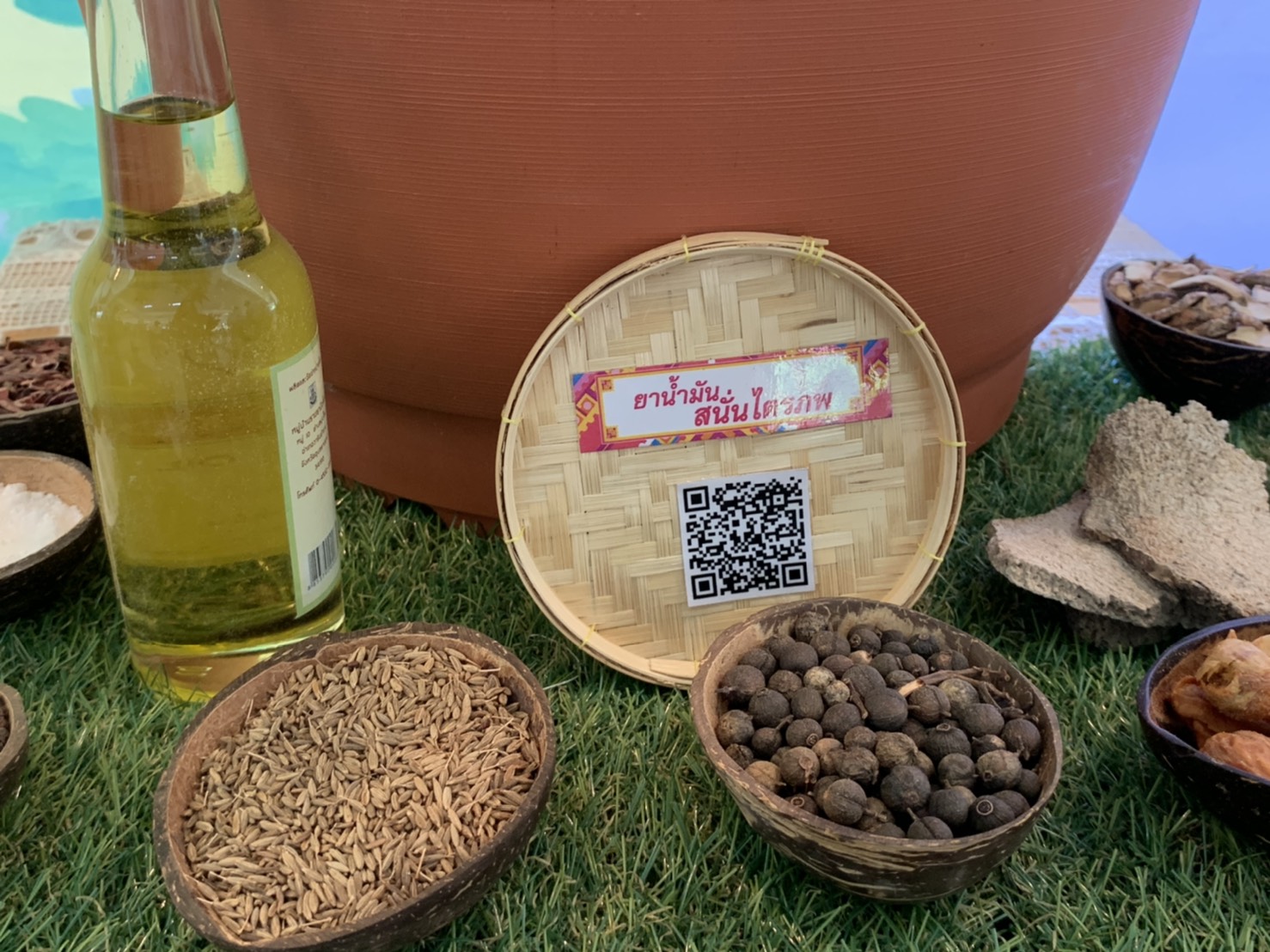 2.โซนภูมิปัญญา เช่น นิทรรศการนวดไทย ร้านวัฒนธรรมส่งเสริมและเชิดชูภูมิปัญญาการนวดไทย ภูมิทัศน์สวนสมุนไพรจำลอง จัดแสดงเครื่องยาสมุนไพรที่เกี่ยวข้องกับการนวด แจกหนังสือ กล้าไม้เมล็ดพันธุ์ฟ้าทลายโจร