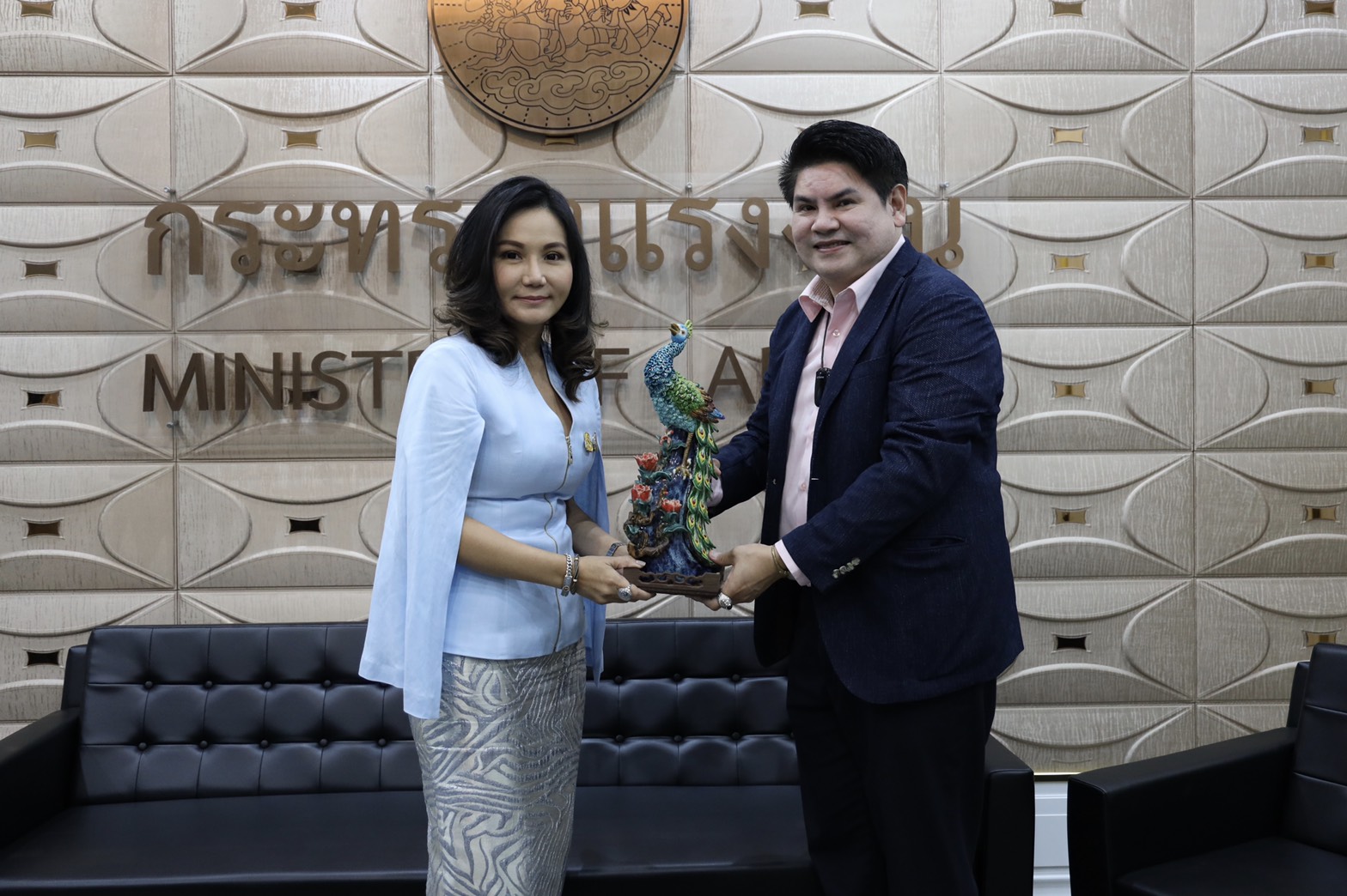 นางนฤมล ภิญโญสินวัฒน์ รัฐมนตรีช่วยว่าการกระทรวงแรงงาน ต้อนรับนายณัฐฐินันท์ สุขสมพงษ์ ประธานกรรมการบริหาร บริษัท แคท บัซซ์ ทีวี จำกัด และคณะ หารือแนวทางการสร้าง Smart Governance ด้วยการสร้าง Digital Service Platform บน Line Official Account ของกรมพัฒนาฝีมือแรงงาน ณ ห้องรับรองพิเศษ ชั้น 6 อาคารกระทรวงแรงงาน
