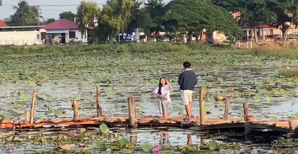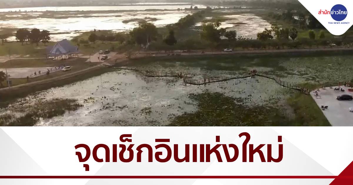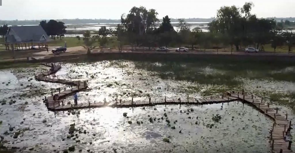 มหาสารคาม 11 พ.ย.-ที่อำเภอกันทรวิชัย จังหวัดมหาสารคาม ภาครัฐและชาวบ้านร่วมกันสร้างสะพานไม้เชื่อมจากสวนสาธารณะเฉลิมพระเกียรติ ไปยังเกาะกลางหนองบัว เพื่อเป็นจุดเช็คอินแห่งใหม่ที่กำลังได้รับความนิยมจากนักท่องเที่ยว
