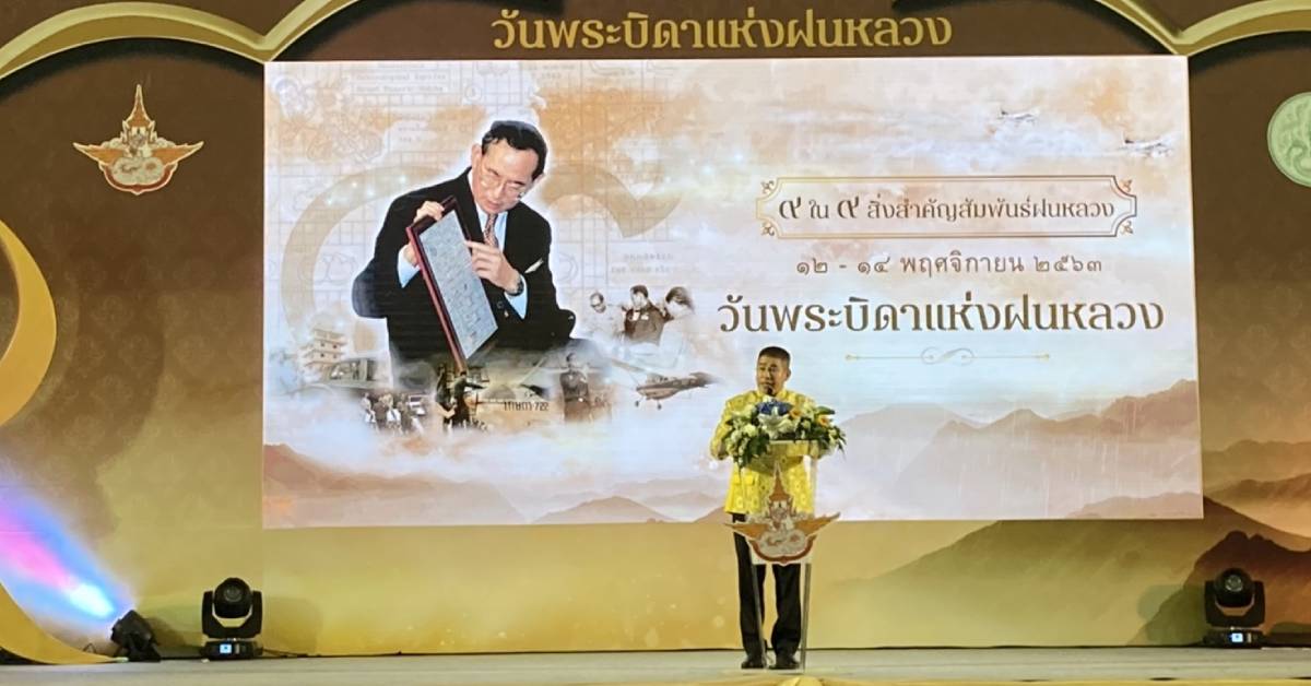 ร้อยเอก ธรรมนัส พรหมเผ่า รัฐมนตรีช่วยว่าการกระทรวงเกษตรและสหกรณ์ กล่าวว่า นับจากวันที่ 14 พฤศจิกายน 2498 เป็นวันที่พระบาทสมเด็จพระบรมชนกาธิเบศร มหาภูมิพลอดุลยเดชมหาราช บรมนาถบพิตร ทรงมีพระราชดาริที่จะคิดค้น วิจัย หาวิธีการทาฝนหลวงเพื่อแก้ไขปัญหาความทุกข์ยากของเกษตรกรและประชาชนทั่วไปที่ประสบภัยแล้ง โดยคณะรัฐมนตรีได้มีมติเมื่อวันที่ 20 สิงหาคม 2545 เฉลิมพระเกียรติพระองค์ท่านในฐานะทรงเป็นพระบิดาแห่งฝนหลวง และกำหนดให้วันที่ 14 พฤศจิกายนของทุกปี เป็นวันพระบิดาแห่งฝนหลวง