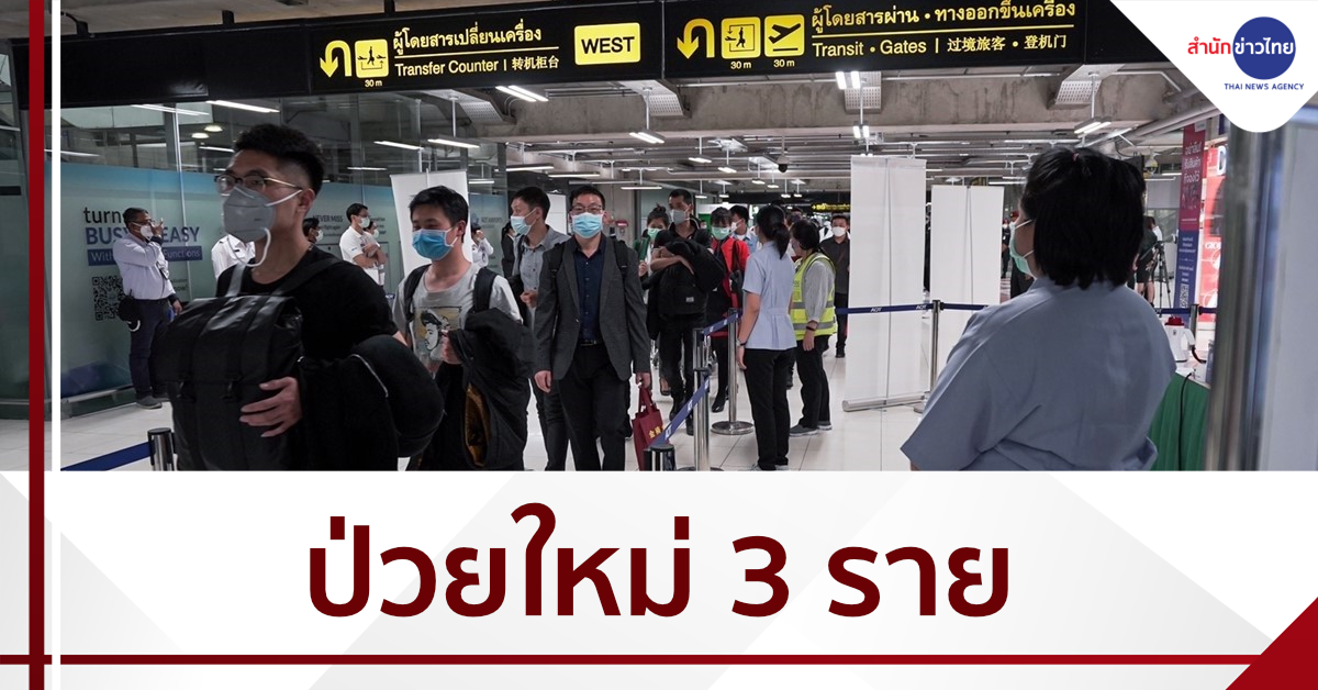 ทั้งหมดเดินทางมาจากต่างประเทศ จาก ฟิลิปปินส์ 1 ราย สหราชอาณาจักร 2 ราย เข้าพักสถานที่กักกันที่รัฐจัดให้ (Alternative State Quarantine)