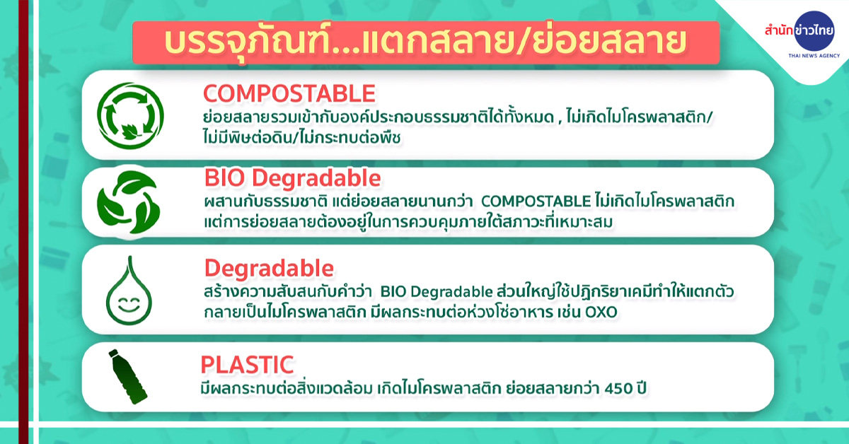 30 พ.ย. – กินอยู่ปลอดภัย ในวันนี้ จะเสนอเป็นตอนสุดท้าย เราจะไปดูกันว่า บรรจุภัณฑ์เเบบไหน ที่ย่อยสลายได้จริงเเละไม่ทิ้งภาระต่อสิ่งแวดล้อม ไปติดตามจากรายงาน .- สำนักข่าวไทย