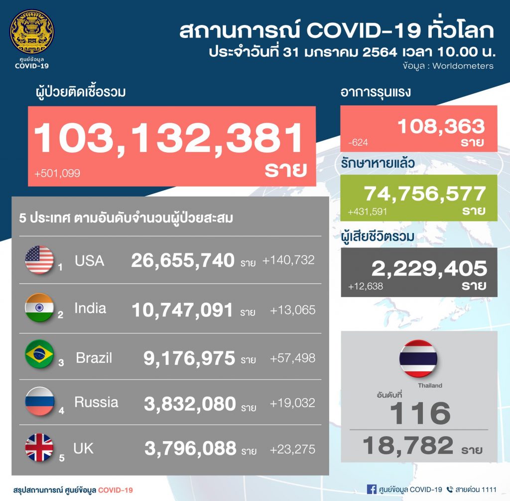 ยอดผู้ติดเชื้อรวม 103,132,381 ราย