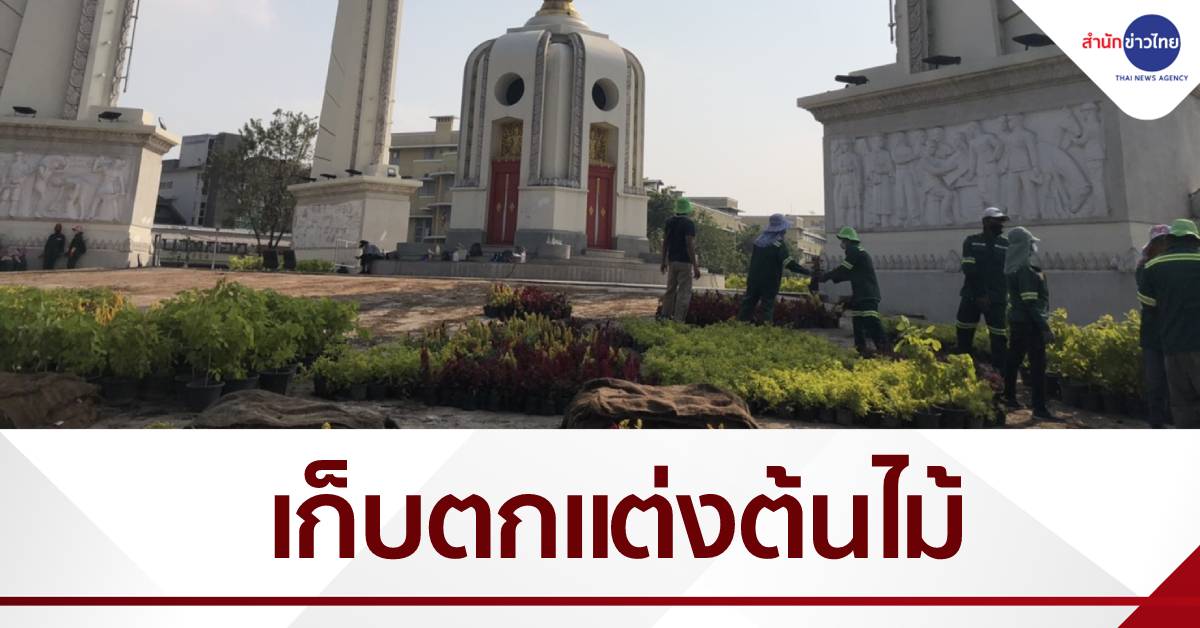 กทม. 14 ก.พ.-เจ้าหน้าที่ กทม. เข้าเก็บตกแต่งต้นไม้ และไม้ดอก รอบอนุสาวรีย์ประชาธิปไตย ที่เสียหายจากการชุมนุมเมื่อคืนที่ผ่านมา พบเสียหาย 70% เปิดจราจรตามปกติทุกเส้นทางแล้ว