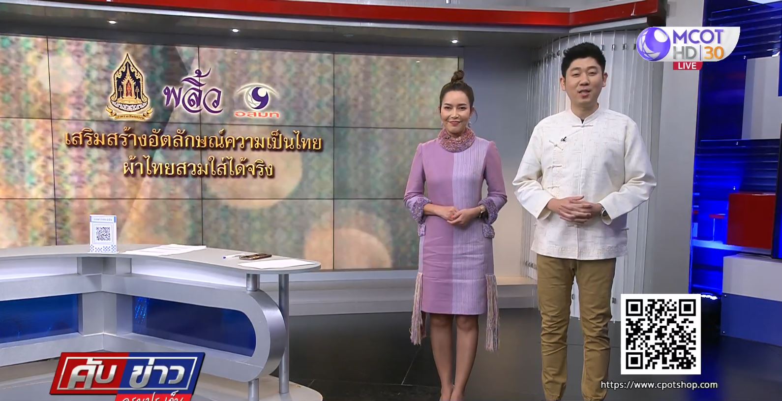 สำหรับผ้าไทยวันนี้ (13 เม.ย.) เป็นเสื้อผ้าจากชุมชนคุณธรรมบ้านทุ่งโพธิ์ จังหวัดหนองบัวลำภู ที่ถูกผสมผสานการออกแบบร่วมสมัยจากแบรนด์ ขวัญตา (ชุดผู้หญิง) ที่นำลายผ้าโบราณ หรือที่ชาวบ้านเรียกว่า ลายหมากหวายน้อย ของจังหวัดหนองบัวลำภู นำมาใช้กับเทคนิคการด้นมือที่มีความประณีตงดงาม จุดเด่นของผ้าผืนนี้คือความนุ่มละมุนของเนื้อผ้าทำให้ผู้ที่สวมใส่รู้สึกสบายผิว