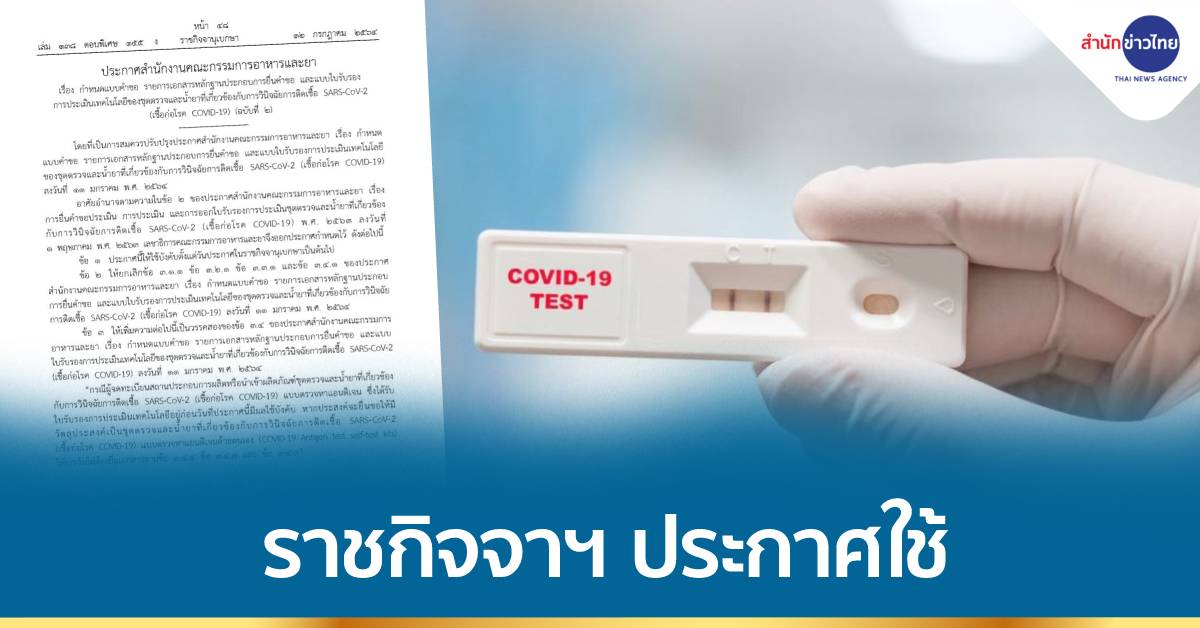 ราชกิจจานุเบกษา เผยแพร่ประกาศกระทรวงสาธารณสุข เรื่อง ชุดตรวจและน้ำยาที่เกี่ยวข้องกับการวินิจฉัยการติดเชื้อก่อโรคโควิด-19 แบบตรวจหาแอนติเจนด้วยตนเอง ประกาศโดยนายอนุทิน ชาญวีรกูล รัฐมนตรีว่าการกระทรวงสาธารณสุข ลงวันที่ 12 กรกฎาคม 2564 เพื่อให้มีการเข้าถึงการตรวจคัดกรองที่เกี่ยวข้องกับการวินิจฉัยการติดเชื้อก่อโรคโควิด-19 ด้วยตนเอง อันจะทำให้ประชาชนได้รับทราบถึงสถานการณ์ติดเชื้อก่อโรคของตนเองตั้งแต่ในระยะเริ่มแรก นำไปสู่กระบวนการตรวจวินิจฉัย ยืนยันรักษาและป้องกันที่เหมาะสมโดยเร็ว