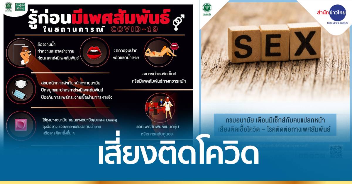 กทม. 7 ส.ค.-กรมอนามัย เตือนมีเพศสัมพันธ์กับคนแปลกหน้า เสี่ยงติดเชื้อโควิด-โรคติดต่อทางเพศสัมพันธ์