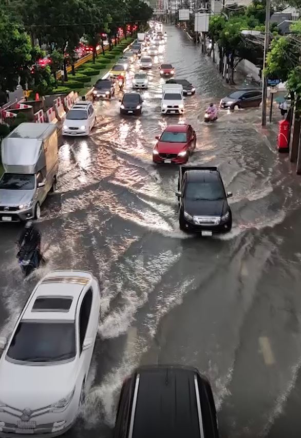 คลิปที่เห็นเป็นภาพน้ำท่วมขังบริเวณหน้าศาลอาญา มีน้ำท่วมขังสูง ทำให้รถเล็กไม่สามารถวิ่งเลนซ้ายได้ ต้องเบี่ยงมาวิ่งเลนขวาสุด เพราะกลัวน้ำจะเข้ารถ ทำให้รถติดสะสมเป็นทางยาว จุดนี้หากฝนตกเมื่อไหร่จะมีน้ำท่วมขังเป็นประจำ