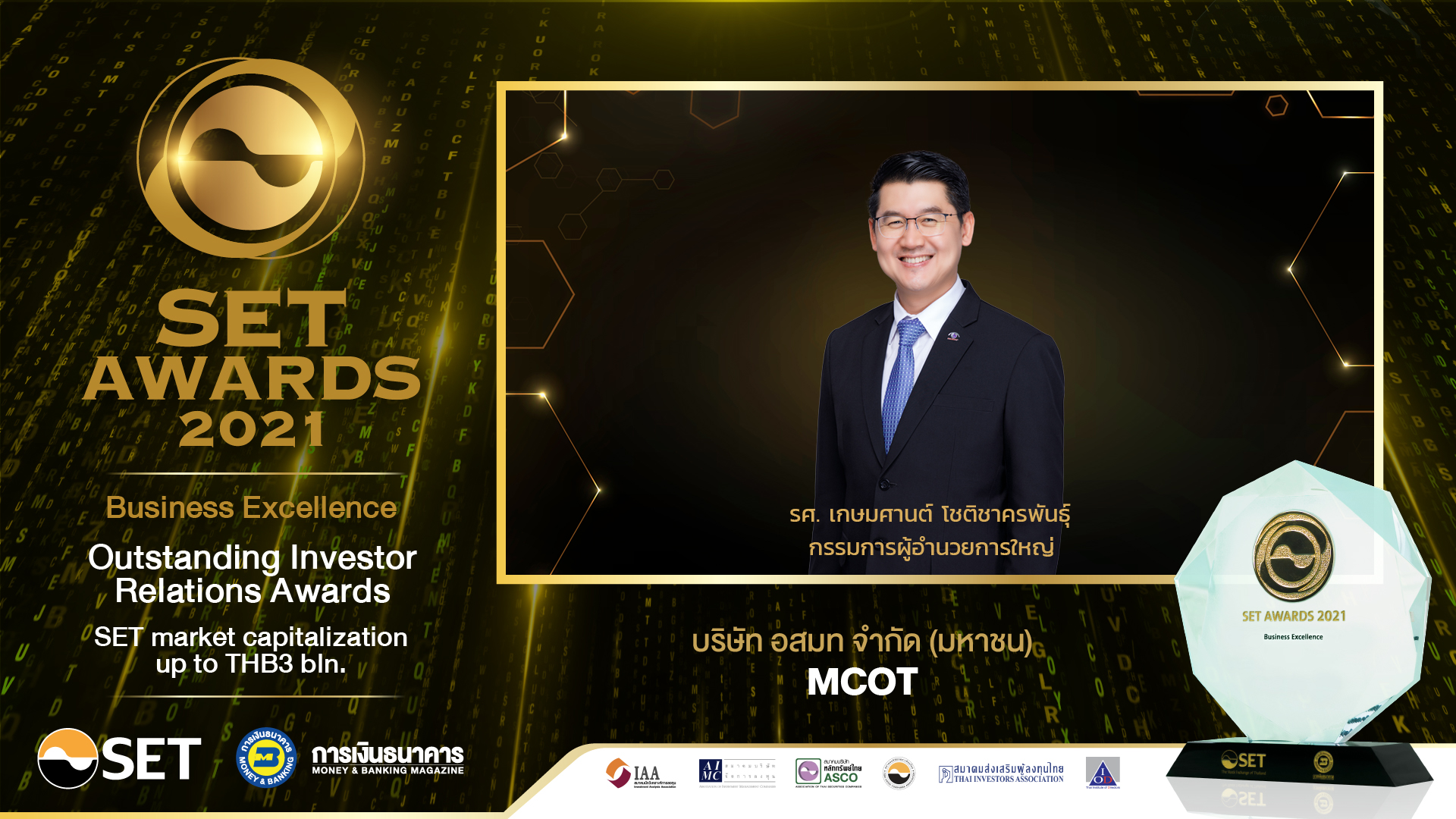 ออสมท 4 พ.ย.- บมจ.อสมท ได้รับรางวัลแห่งความภาคภูมิใจ “ด้านนักลงทุนสัมพันธ์” Outstanding Investor Relations Awards : SET Awards 2021