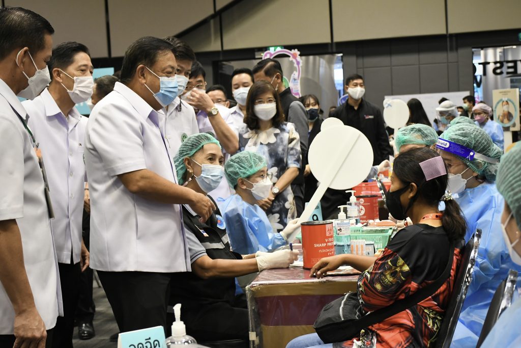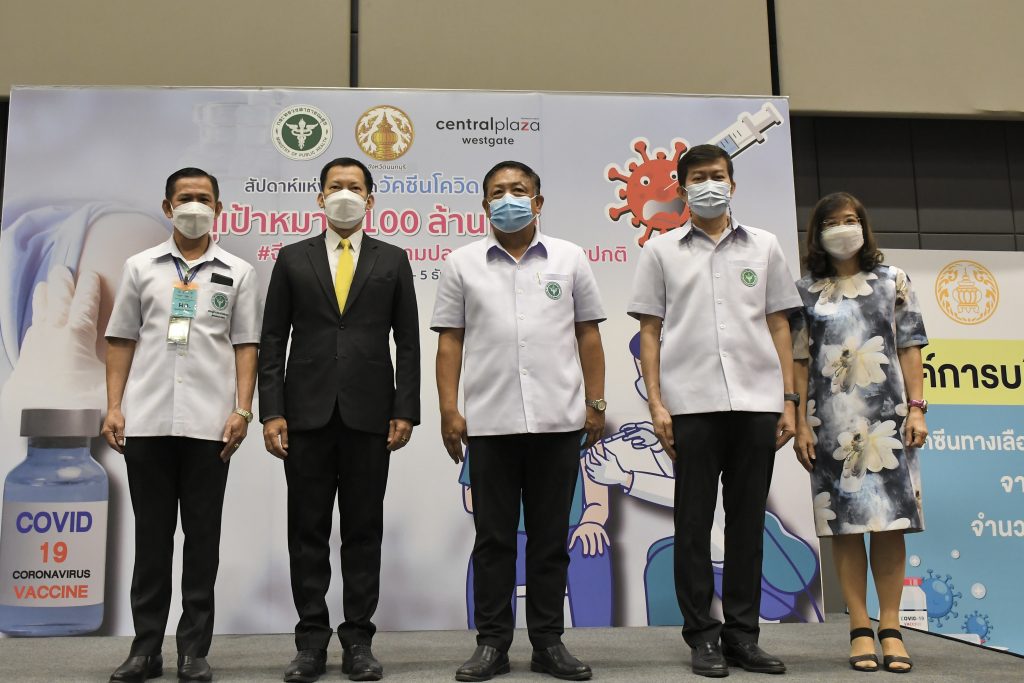 วันนี้ (27 พฤศจิกายน 2564) ที่ห้างสรรพสินค้าเซ็นทรัลพลาซา เวสต์เกต จ.นนทบุรี นายแพทย์เกียรติภูมิ วงศ์รจิต ปลัดกระทรวงสาธารณสุข พร้อมด้วยผู้บริหารกระทรวงสาธารณสุข ตรวจเยี่ยมการจัดสัปดาห์แห่งการฉีดวัคซีนโควิด 19 เนื่องในวันสถาปนากระทรวงสาธารณสุขและวันพ่อแห่งชาติ ระหว่างวันที่ 27 พฤศจิกายน – 5 ธันวาคม 2564 ซึ่งเริ่มวันนี้เป็นวันแรก ตั้งเป้าหมายให้ถึง 100 ล้านโดส ภายในสิ้นเดือนพฤศจิกายนนี้ โดยนายแพทย์เกียรติภูมิ ได้ฉีดวัคซีนให้แก่ประชาชนด้วยตนเอง 3 ราย