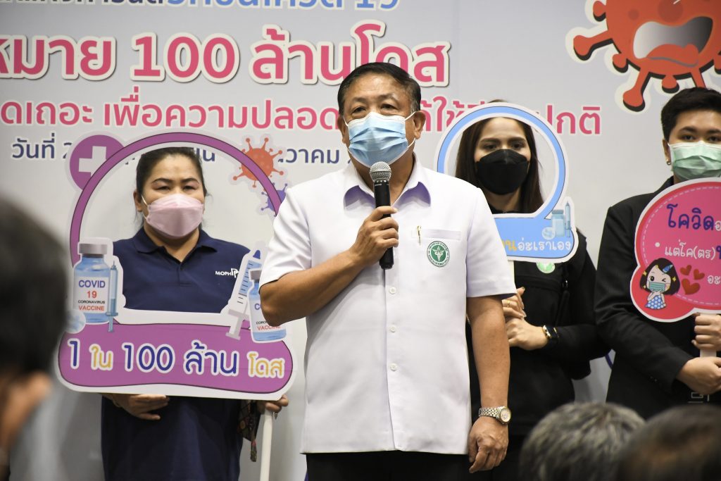 นนทบุรี 27 พ.ย.-ปลัดกระทรวงสาธารณสุข เปิดสัปดาห์รณรงค์ฉีดวัคซีนโควิด-19 ตั้งเป้าให้ถึง 100 ล้านโดส หรือ 70% ของประชากร ในเดือนพฤศจิกายนนี้ ขอประชาชนช่วยกันชวนมาฉีดวัคซีน ป้องกันตนเองสูงสุด หากมีความเสี่ยงตรวจ ATK กิจการต่างๆ เข้มมาตรการ COVID Free Setting เพื่อให้ธันวาคมเป็นเดือนแห่งความสุข ได้ฉลองคริสมาสต์-ปีใหม่ ไม่ต้องกลับไปสู่การปิดประเทศอีก ส่วนปีหน้าเตรียมวัคซีนไว้ฉีดเข็ม 3 และ 4 แล้ว 120 ล้านโดส