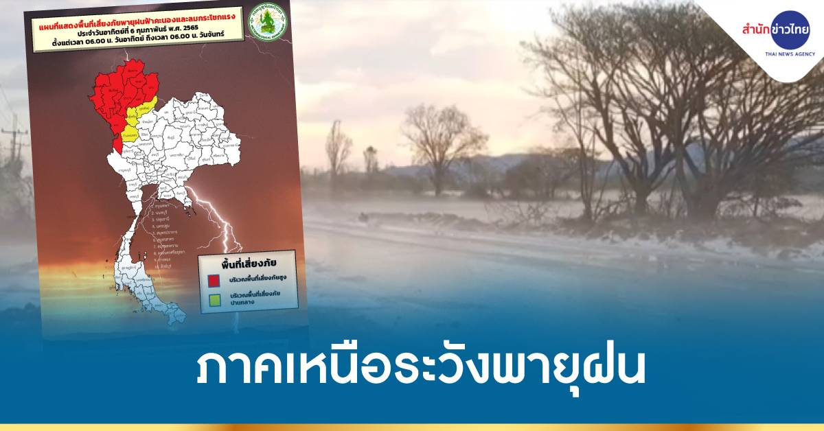 ในวันที่ 6 กุมภาพันธ์ 2565 คลื่นกระแสลมฝ่ายตะวันตกจากประเทศเมียนมาเคลื่อนเข้าปกคลุมภาคเหนือของประเทศไทย ลักษณะเช่นนี้ทำให้บริเวณดังกล่าวมีพายุฝนฟ้าคะนอง ลมกระโชกแรง และลูกเห็บตก รวมถึงฟ้าผ่าเกิดขึ้นได้บางพื้นที่ ส่วนมากบริเวณจังหวัดแม่ฮ่องสอน เชียงใหม่ เชียงราย ลำพูน ลำปาง พะเยา แพร่ น่าน อุตรดิตถ์ ตาก กำแพงเพชร และสุโขทัย หลังจากนั้นอุณหภูมิจะลดลง 3-5 องศาเซลเซียสในภาคเหนือตอนบน สำหรับยอดดอยมีอากาศหนาวถึงหนาวจัด อุณหภูมิต่ำสุด 2-12 องศาเซลเซียส กับมีน้ำค้างแข็งบางแห่ง ขอให้ประชาชนในบริเวณดังกล่าวระวังอันตรายจากฝนฟ้าคะนองและลมกระโชกแรง รวมถึงฟ้าผ่าที่อาจจะเกิดขึ้นได้ โดยหลีกเลี่ยงการอยู่ในที่โล่งแจ้ง ใต้ต้นไม้ใหญ่ และป้ายโฆษณาที่ไม่แข็งแรง สำหรับเกษตรกรควรเตรียมการป้องกันและระวังความเสียหายที่จะเกิดต่อผลผลิตทางการเกษตรไว้ด้วย