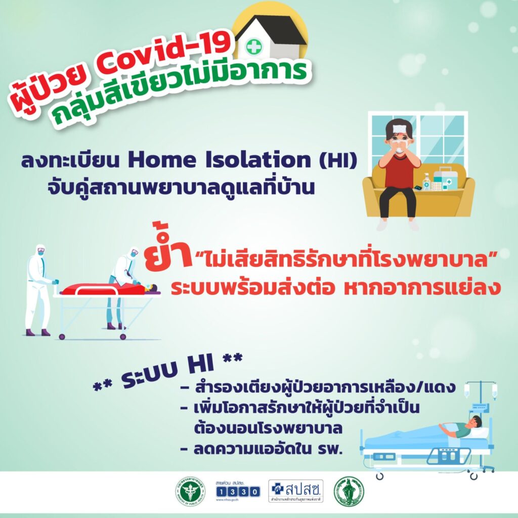 นโยบายของรัฐบาลให้ผู้ติดเชื้อโควิด-19 เข้าสู่การรักษาที่บ้าน (Home Isolation) หากสภาพบ้านไม่พร้อม จะเข้าสู่การรักษาในระบบชุมชน (Community Isolation) แต่ถ้าหากอาการรุนแรงขึ้น คนไข้จะถูกส่งต่อเข้าโรงพยาบาลตามความเร่งด่วนของคนไข้แต่ละราย