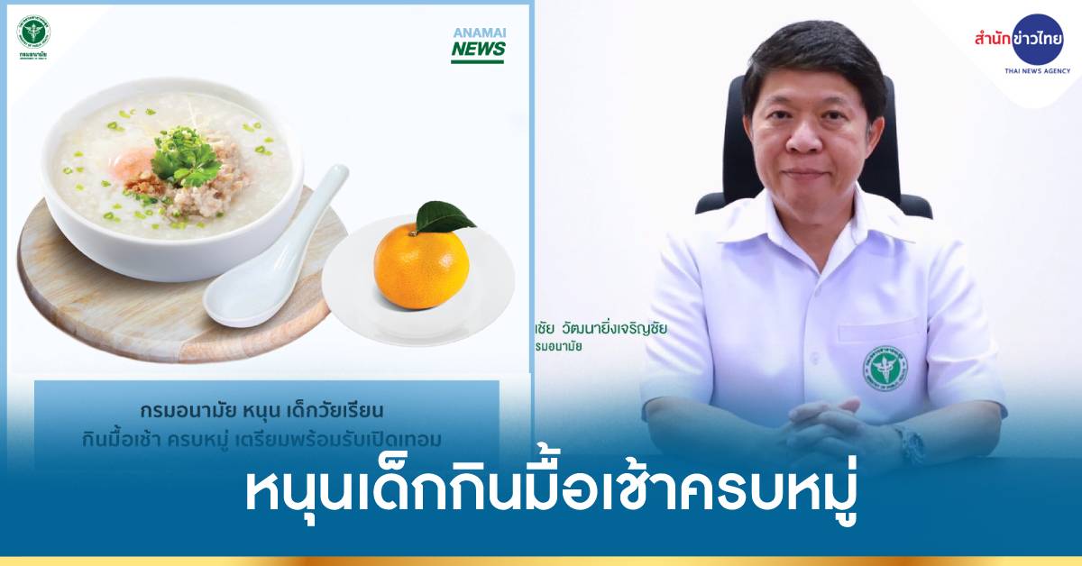 กทม. 16 พ.ค.-กรมอนามัย แนะนำพ่อแม่ ผู้ปกครอง ควรดูแลลูกหลานให้มีโภชนาการที่ดี กินครบ 5 หมู่ ทั้ง 3 มื้อ ดื่มนมรสจืด เตรียมความพร้อมรับช่วงเปิดเทอม