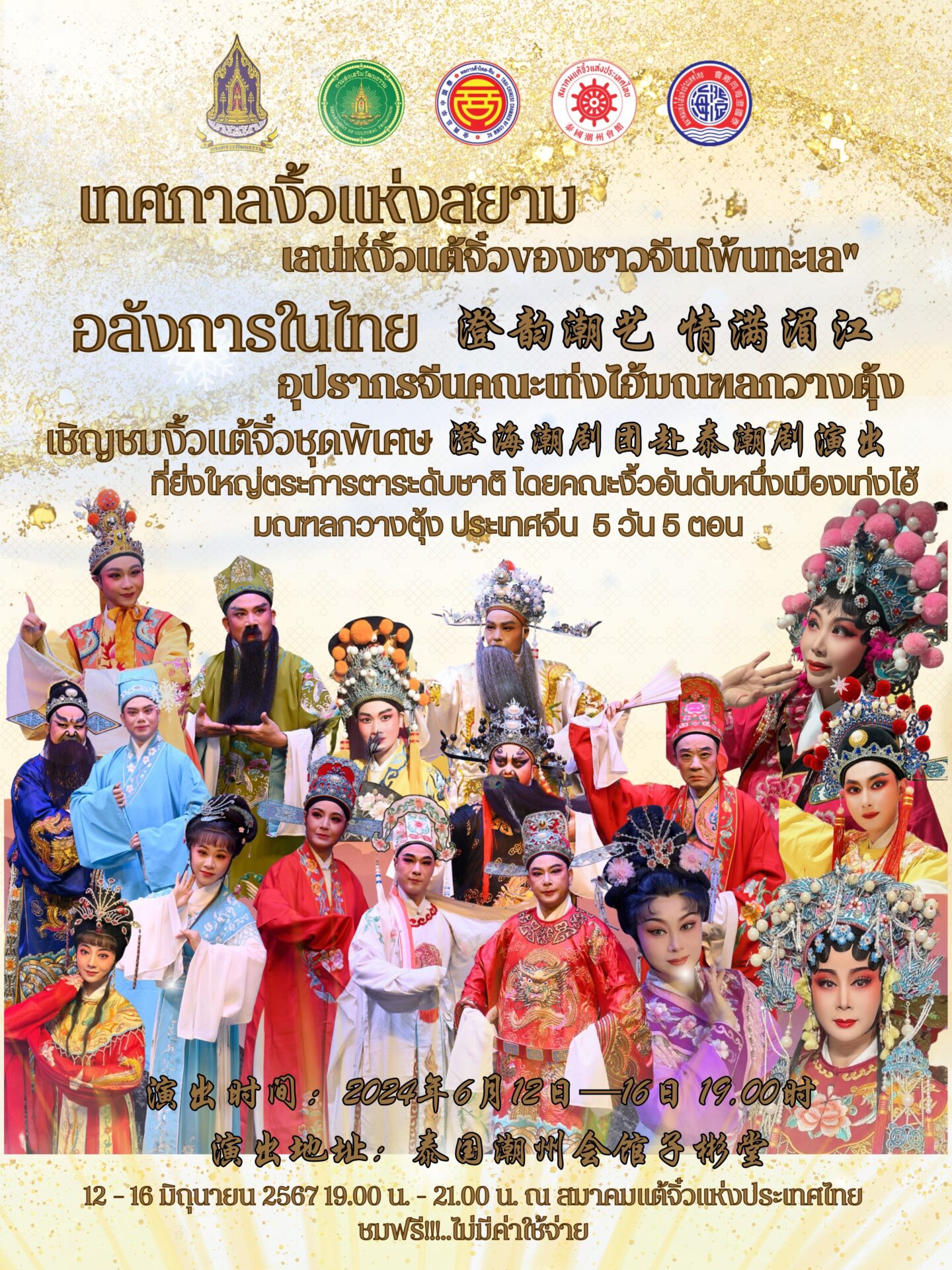 ที่สมาคมเท่งไฮ้แห่งประเทศไทย เขตบางรัก กรุงเทพ จัดการแถลงข่าว“เทศกาลงิ้วแต้จิ๋วแห่งสยาม เสน่ห์งิ้วแต้จิ๋วของจีนโพ้นทะเล” การแสดงงิ้วแต้จิ๋วชุดพิเศษโดยคณะงิ้วอันดับหนึ่งเมืองเท่งไฮ้ มณฑลกวางตุ้ง ประเทศจีน จากสาธารณรัฐประชาชนจีน ระหว่างวันที่ 12-16 มิถุนายน 2567 โดยมี ดร. ยุพา ทวีวัฒนะกิจบวร ปลัดกระทรวงวัฒนธรรม นายชรินทร์ ตั้งอยู่ภูวดล นายกสมาคมเท่งไฮ้แห่งประเทศไทย นายแสงชัย โสตถีวรกุล นายกสมาคมอุปรากรจีน นายปรีชา ประเสริฐถาวร อุปนายกสมาคม และนายนราพล โพธิ์สุวัฒนากุล อุปนายกสมาคม ร่วมกันแถลงข่าว