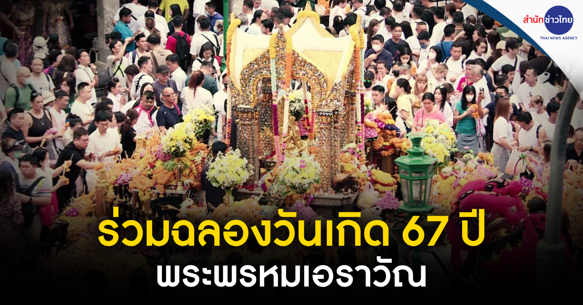 กรุงเทพฯ 9 พ.ย. – วันนี้ (9 พ.ย.66) เป็นวันครบรอบวันเกิด 67 ปี ของพระพรหมเอราวัณ แยกราชประสงค์ ที่ทั้งคนไทยและต่างชาติ โดยเฉพาะผู้มีเชื้อสายจีนให้ความเคารพศรัทธาอย่างมาก มีการจัดงานเต็มรูปแบบครั้งแรกในรอบ 3 ปี หลังพ้นโควิด. – สำนักข่าวไทย