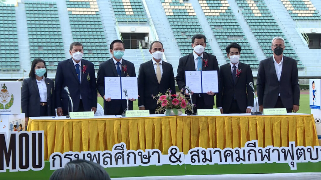 นายเขมพล อุ้ยตยะกุล เลขานุการ รัฐมนตรีว่าการกระทรวงการท่องเที่ยวและกีฬา พร้อมด้วย ดร.นิวัตน์ ลิ้มสุขนิรันดร์ อธิบดีกรมพลศึกษา และนายยุทธนา หยิมการุณ อุปนายกสมาคมกีฬาฟุตบอลแห่งประเทศไทย ร่วมกันลงนามบันทึกข้อตกลงความร่วมมือ เพื่อวางแผนพัฒนาฟุตบอลไทยในระยะยาว มีวัตถุประสงค์ด้านที่สำคัญคือ เพื่อเพิ่มจํานวนบุคลากรให้ได้รับการเรียนรู้และฝึกสอนอย่างถูกต้อง, พัฒนาทักษในระดับรากหญ้า, ลดความทับซ้อนของตารางการแข่งขัน, พัฒนาผู้ฝึกสอน, ผู้ตัดสิน, สร้างฐานข้อมูลร่วมกัน และการส่งเสริมโครงการ FIFA for School