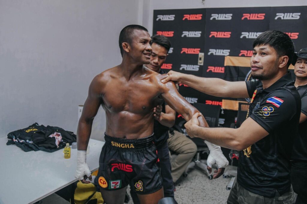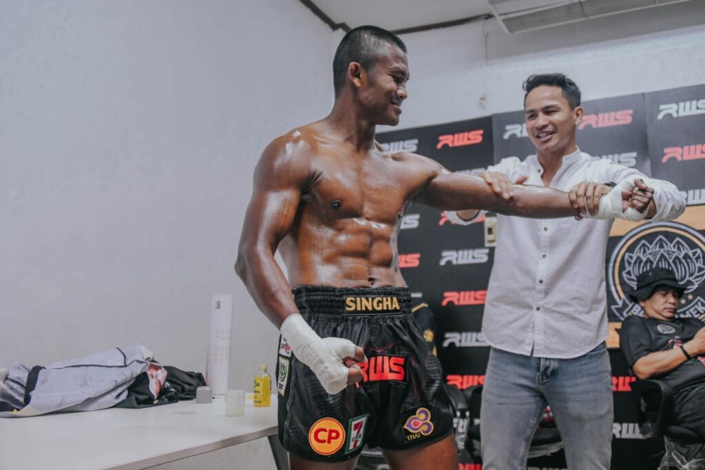 กทม. 20 ส.ค.- แฟนเพจ BanchamekGym เปิดภาพเบื้องหลังศึกมวยไฟต์พิเศษ “KAT PRESENTS LEGEND OF RAJADAMNERN” หรือ RWS ราชดำเนิน เวิลด์ ซีรีส์”ค่ำคืน 19 ส.ค. 65 ที่เวทีมวยราชดำเนิน เวลา 21.15 น. ระหว่างบัวขาว บัญชาเมฆ วัย 40 ปี ขึ้นชกกับ โคตะ มิอุระ นักชกหนุ่มรูปหล่อวัย 20 ปี