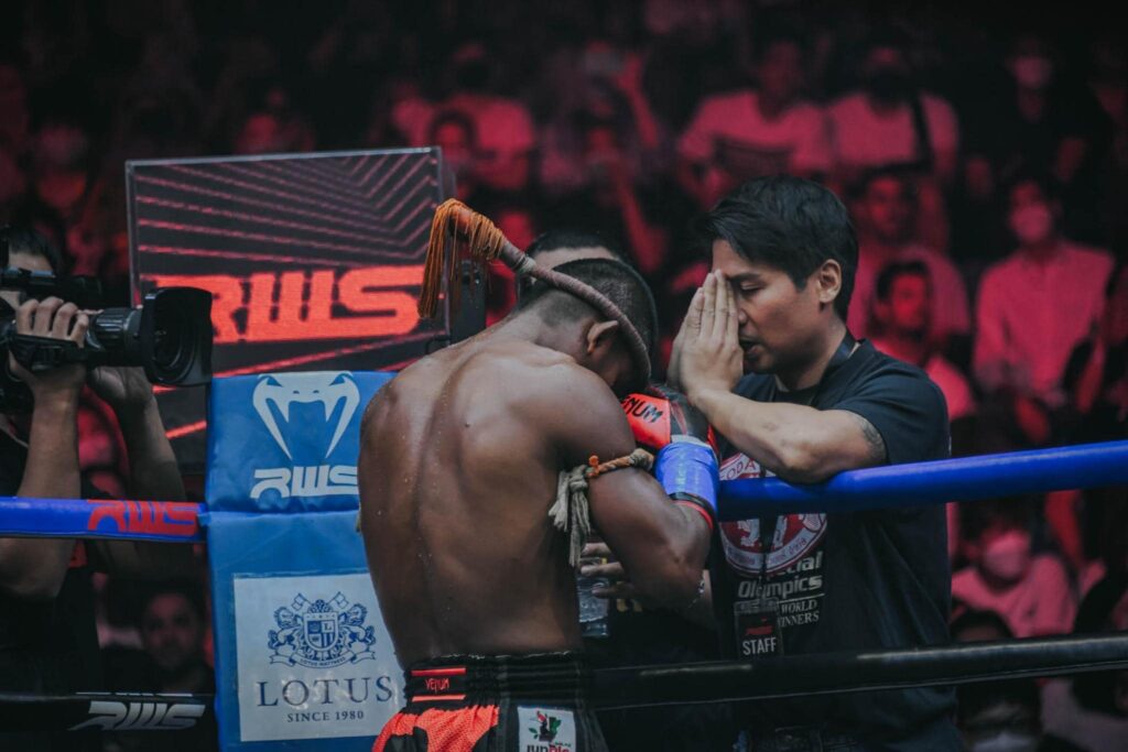 ศึกมวยไฟต์พิเศษ “KAT PRESENTS LEGEND OF RAJADAMNERN” หรือ RWS ราชดำเนิน เวิลด์ ซีรีส์” โดยชกกัน 3 ยก โดยยกสุดท้าย บัวขาว ต้อน โคตะ เข้ามุม ออกอาวุธใส่ไม่ยั้ง ทั้งสาดแข้งแทงเข่าชุดใหญ่ จนกรรมการบนเวทีตัดสินใจขวางแล้วยุติการชก