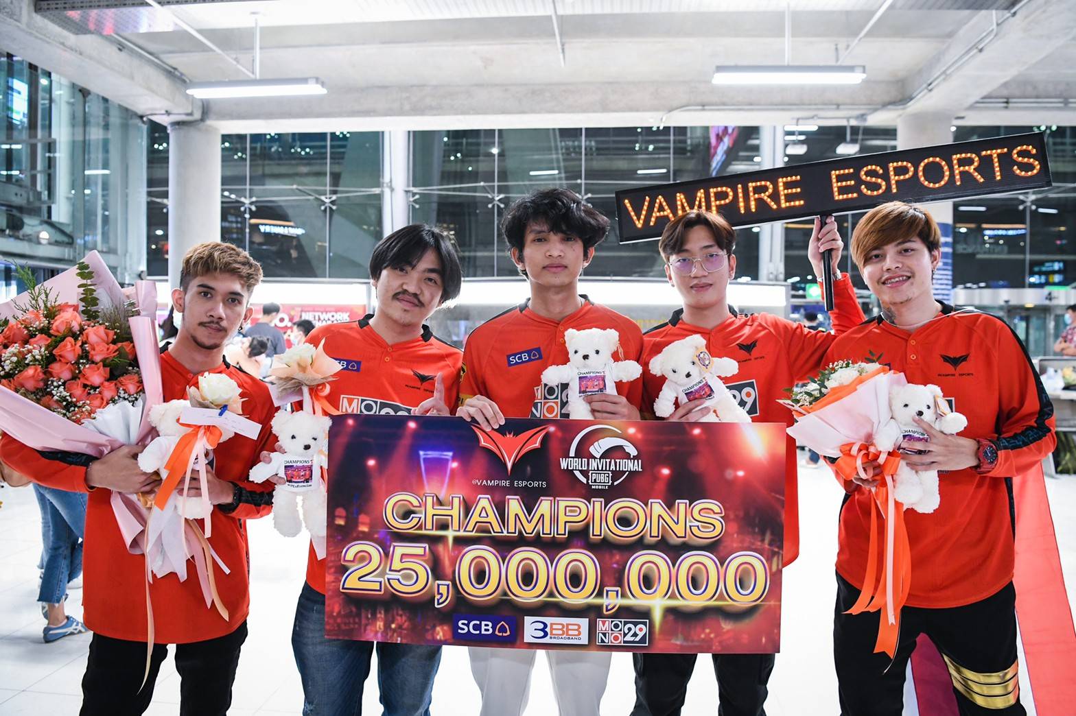 สโมสรแวมไพร์ อีสปอร์ต ภายใต้การดูแลของ บริษัท แวมไพร์ สปอร์ตส์ จำกัด ได้เดินทางกลับถึงประเทศไทยเป็นที่เรียบร้อยแล้ว หลังทำผลงานสุดยอดคว้าแชมป์ “PUBG MOBILE WORLD INVITATIONAL 2022” ที่กรุงริยาด ประเทศซาอุดิอาระเบีย ซึ่งถือได้ว่าทีมจากประเทศไทยคว้าแชมป์โลกได้ทั้งสองรายการ คือ การแข่งขันสัปดาห์แรกที่เป็นทัวร์นาเมนต์หลัก และสัปดาห์ที่สองเป็นทัวร์นาเมนต์ Afterparty Showdown