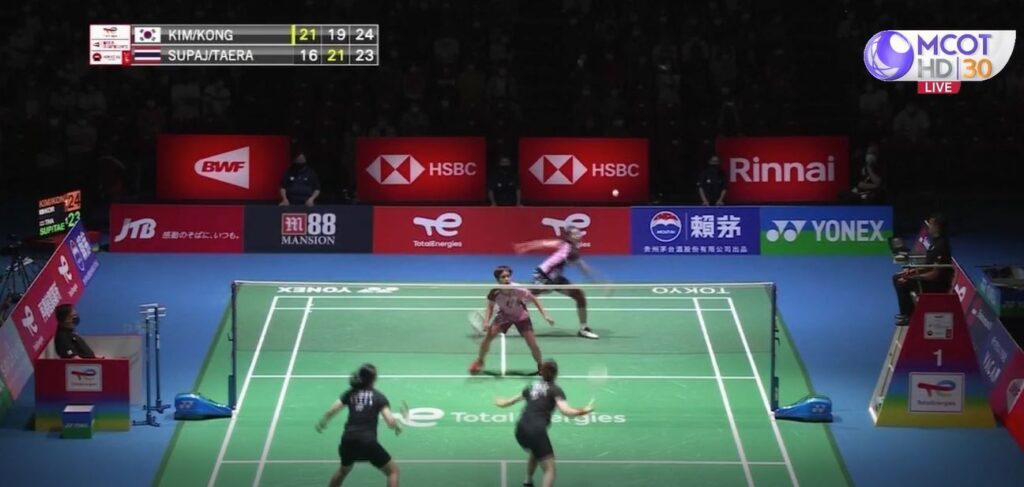 ประเภทหญิงคู่ รอบรองชนะเลิศ “เอิร์ธ” พุธิตา สุภจิรกุล กับ “ปอป้อ” ทรัพย์สิรี แต้รัตนชัย คู่มือ 20 ของโลก พ่ายให้กับ คิม โซยัง กับ คอง ฮียอง คู่มือ 4 ของโลก จากเกาหลีใต้ 1-2 เกม 16-21, 21-19 และ 23-25 ทำให้ “เอิร์ธ-ปอป้อ” เป็นหญิงคู่จากไทยคู่แรกในประวัติศาสตร์ที่คว้าเหรียญทองแดง ศึกแบดมินตันชิงแชมป์โลก ส่วนนัดชิงชนะเลิศ สองสาวเกาหลีใต้ผ่านเข้าไปพบกับ เฉิน ชิง เฉิน กับ เจี่ย อี้ ฟาน คู่มือ 1 ของโลก จากจีน