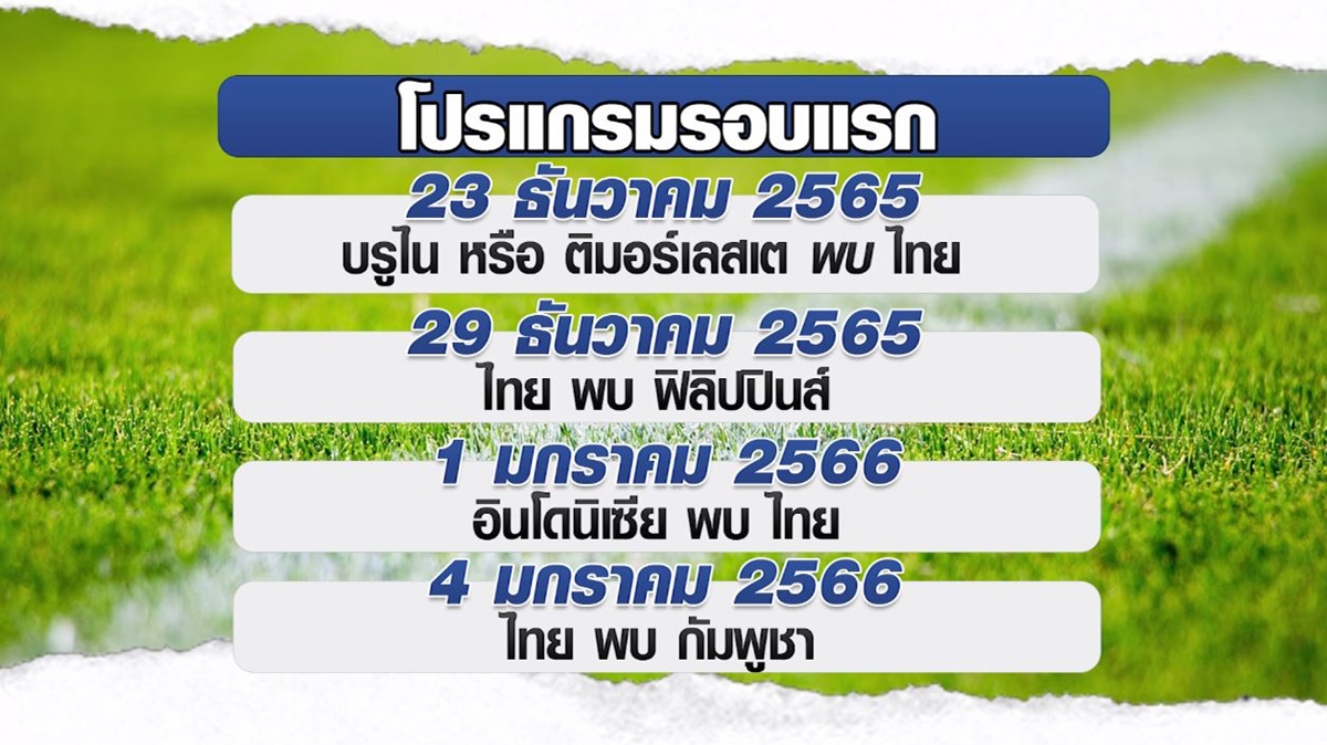โดยโปรแกรมรอบแรก วันที่ 23 ธันวาคม 2565 ไทยจะไปเยือนผู้ชนะระหว่าง ติมอร์-เลสเต หรือ บรูไน