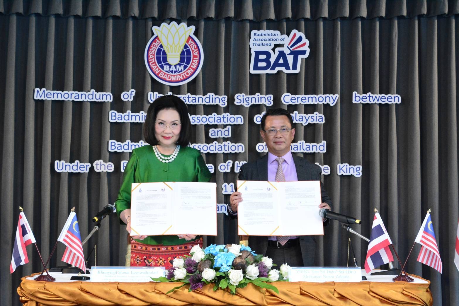 ขณะที่ Tan Sri Dr. Norza Zakaria กล่าวว่า “การลงนามบันทึกข้อตกลงระหว่าง สมาคมกีฬาแบดมินตันแห่งประเทศไทยฯ และสมาคมกีฬาแบดมินตันแห่งมาเลเซีย จะเป็นหลักสำคัญในการพัฒนากีฬานี้ไปด้วยกัน และแน่นอนว่าการแลกเปลี่ยนผู้ฝึกสอน กรรมการผู้ตัดสิน และผู้เชี่ยวชาญ ศักยภาพของนักกีฬา และองค์ความรู้ด้านวิทยาศาสตร์การกีฬา จะส่งผลดีต่อ 2 สมาคมในระยะยาว”