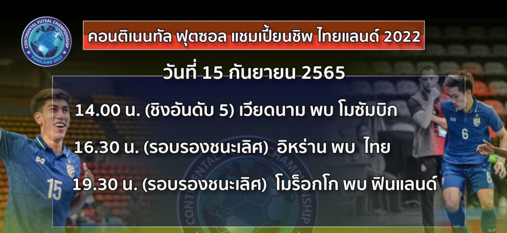 14 ก.ย. – โต๊ะเล็กช้างศึก ชนะ โมซัมบิก 3-1 ผ่านเข้าไปตัดเชือกกับอิหร่าน แชมป์เก่า ในศึกคอนติเนนทัล ฟุตซอล แชมเปียนชิพ ไทยแลนด์ 2022